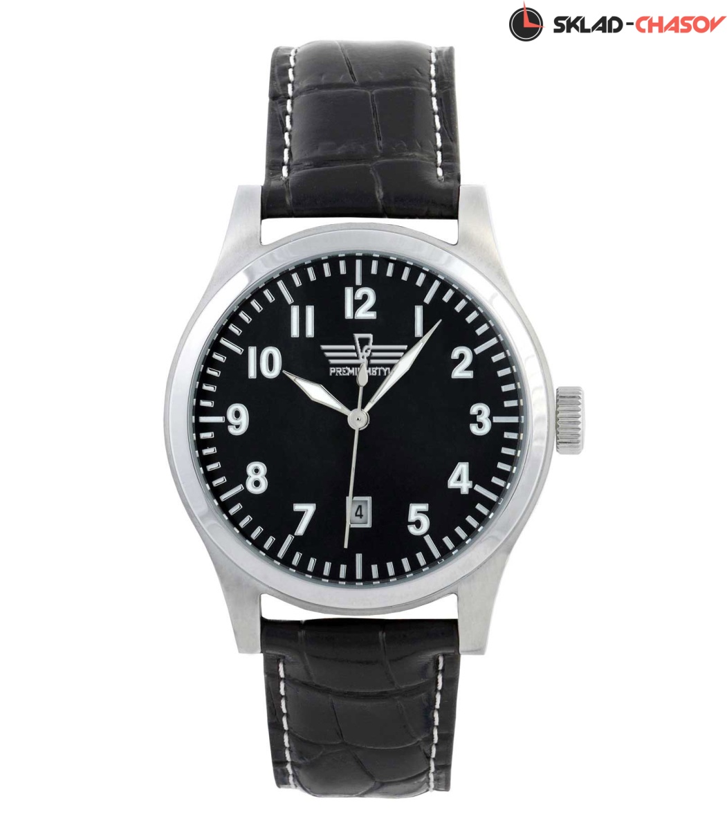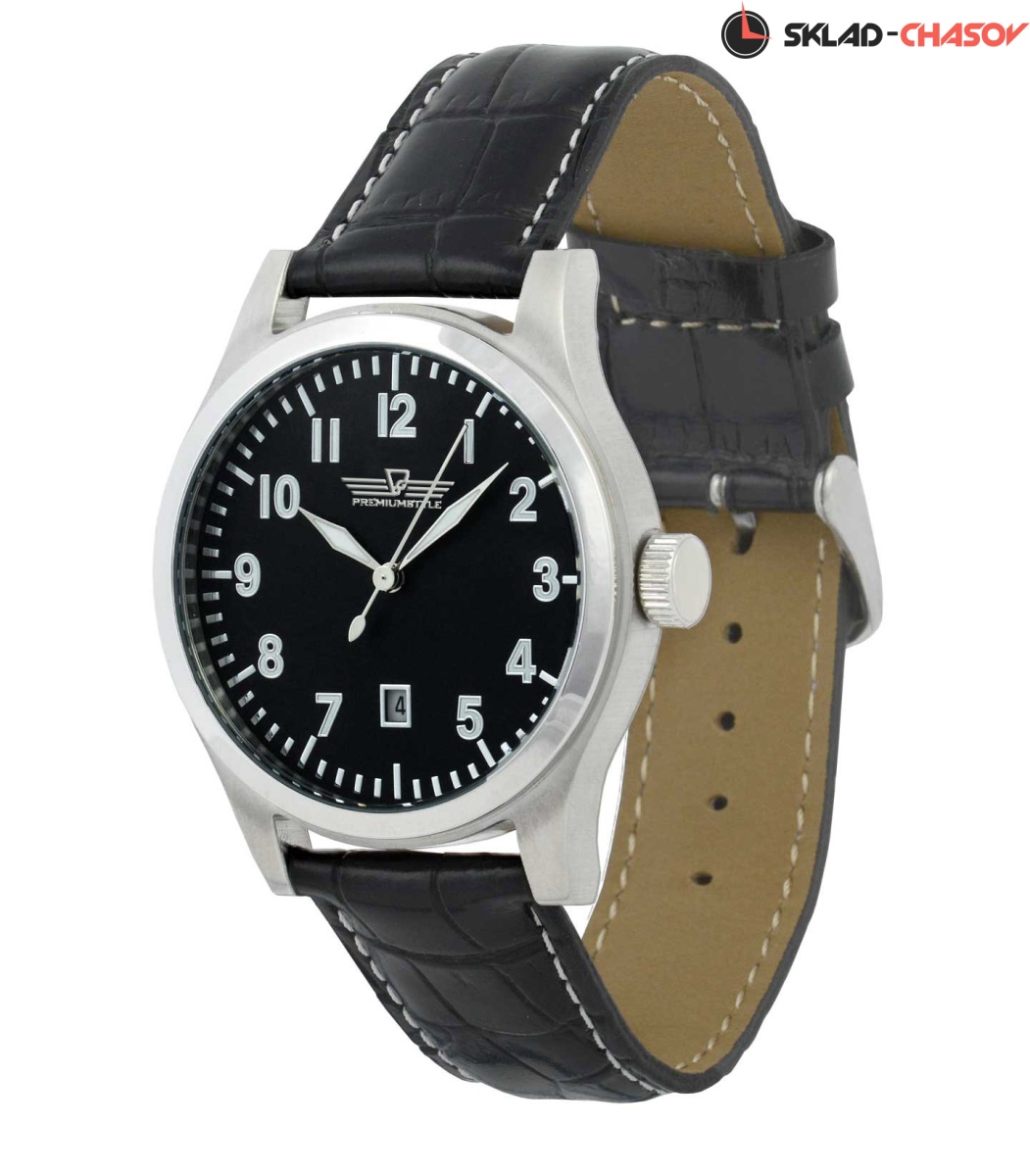 Умеренный милитари-стиль сглажен мягкими очертаниями корпуса. Крупные часовые и минутные индексы, арабские цифры широким шрифтом, чёрный циферблат и чёрный ремень, матированный стальной корпус - всё это рецепт отличной стильной модели часов. Модель есть в другом оформлении.