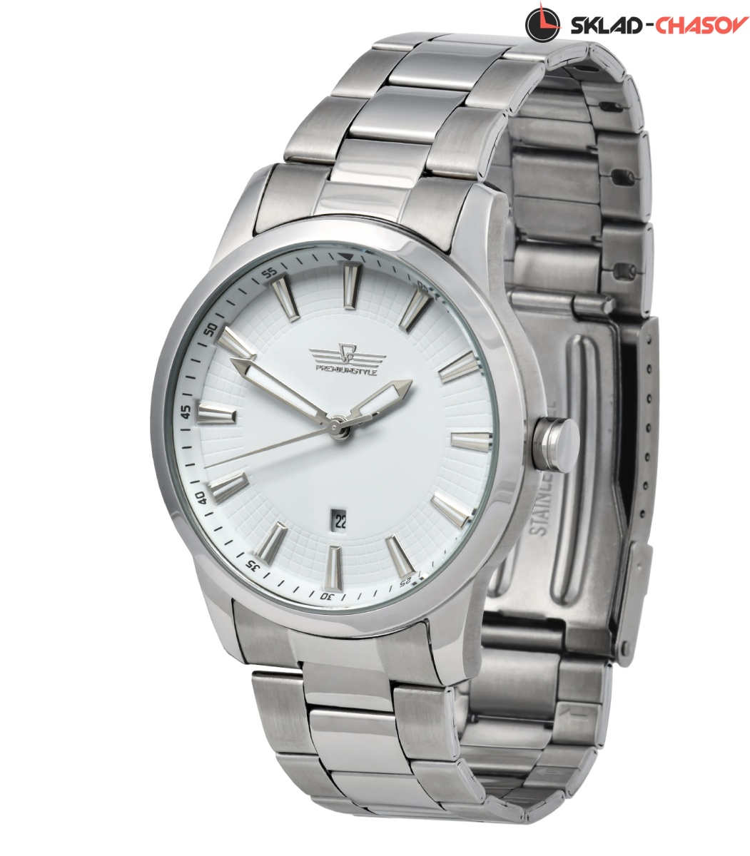 Механизм часов электронно-механический кварцевый. Стрелки/метки стального цвета. Функции- часы, минуты, секунды, дата.