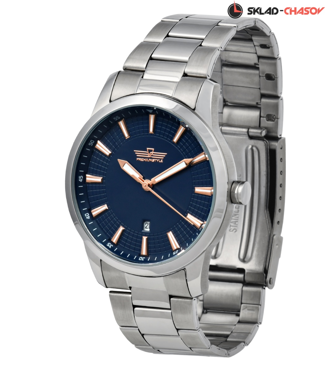 Механизм часов электронно-механический кварцевый. Стрелки/метки стального цвета. Функции- часы, минуты, секунды, дата.