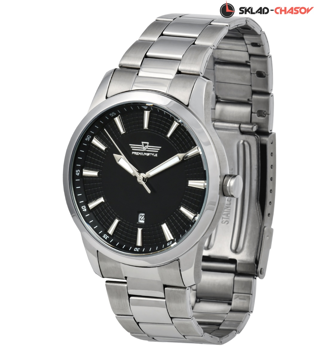 Механизм часов электронно-механический кварцевый. Стрелки/метки стального цвета. Функции- часы, минуты, секунды, дата.