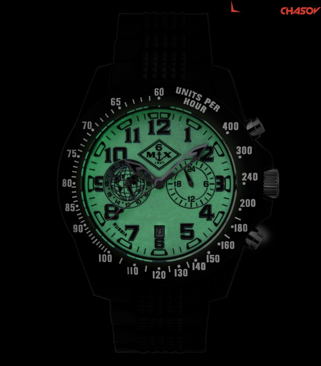 Минеральное стекло защищает циферблат, люминофор в составе которого долго отдаёт накопленный свет.