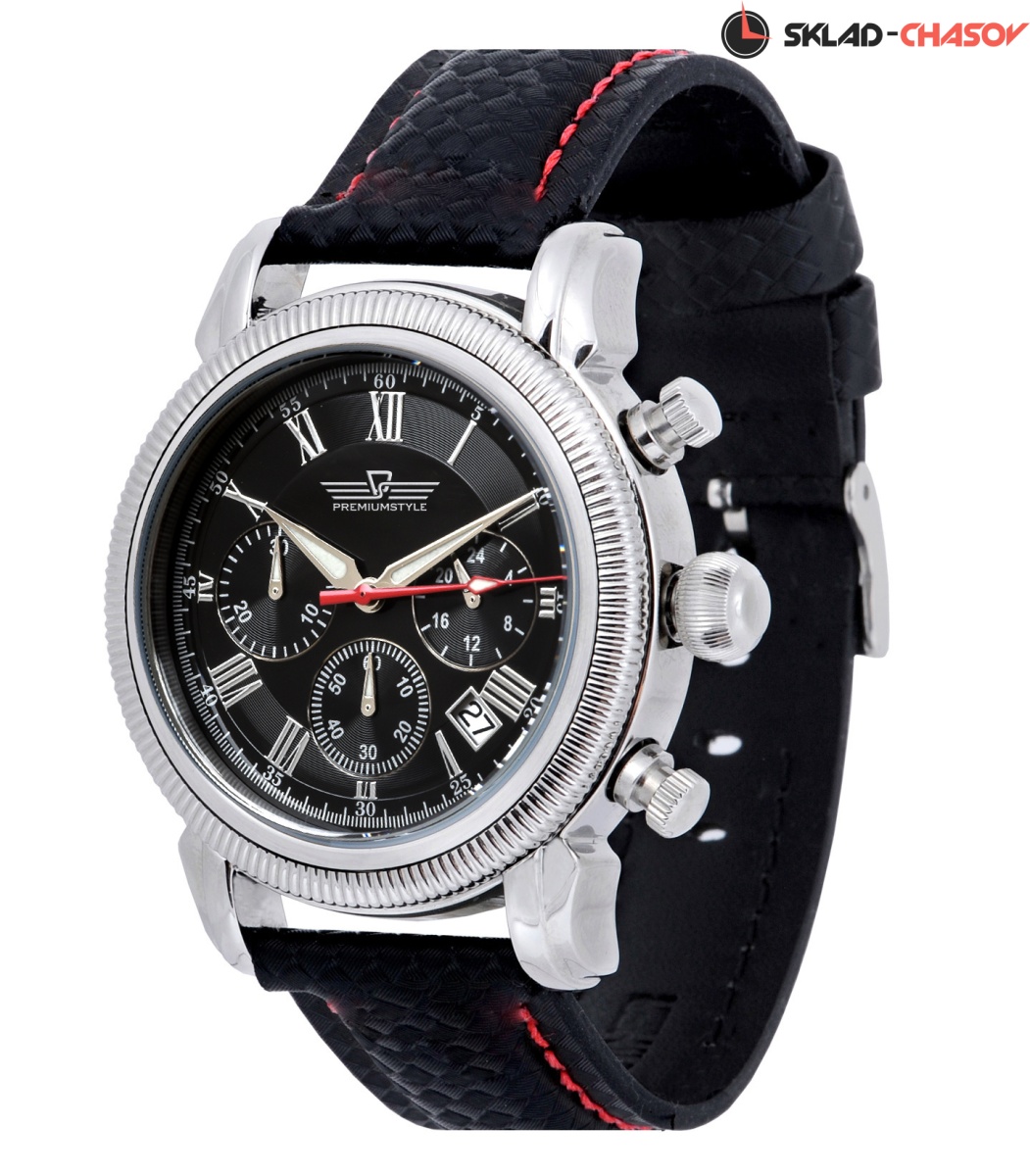 Это один из самых крупных хронографов в нашей коллекции. При высоте корпуса 14,5 мм часы имеют диаметр 45 мм. Кнопки хронографа и заводная головка решением дизайнера по размеру и внешнему виду подчёркивают брутальность модели.