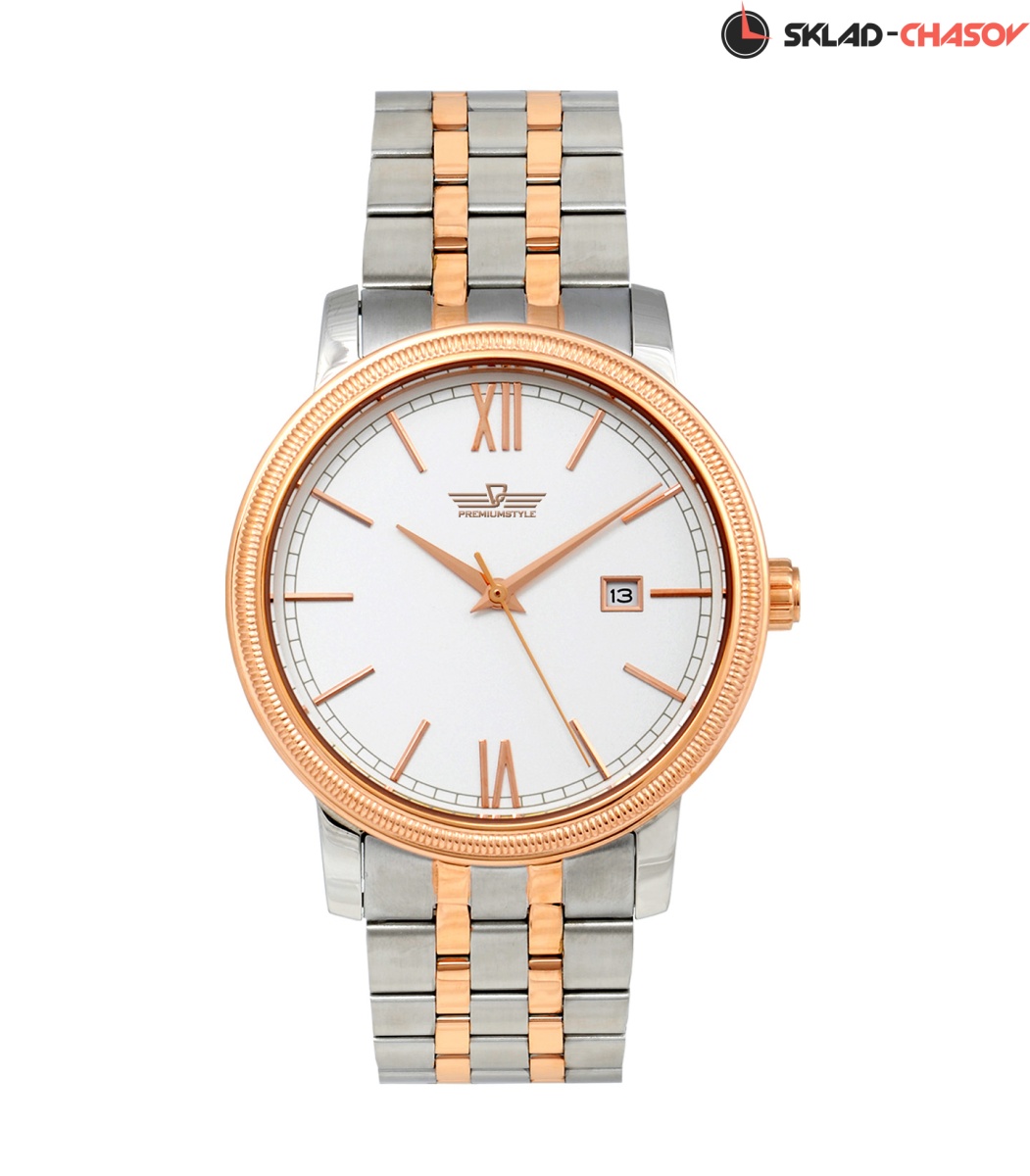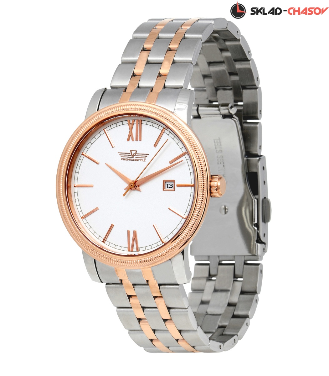 Мужские часы этой модели выпускается в двух вариантах: элементы корпуса и браслета с желтой позолотой и элементы корпуса и браслета с розовой позолотой и имеет парную женскую модель.