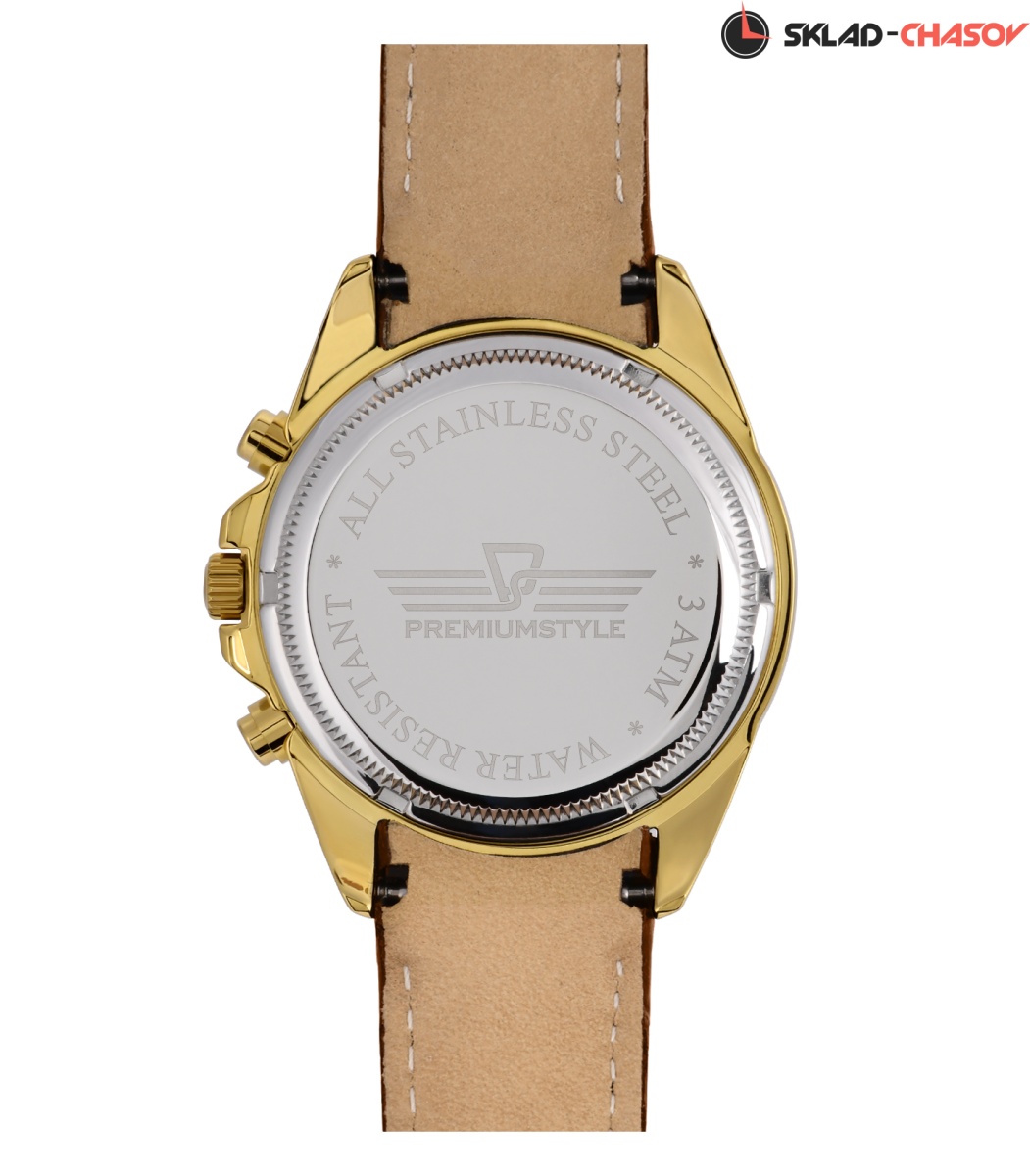 Корпус часов диаметром 40 изготовлен из нержавеющей стали, в позолоченных вариантах покрыт методом ионно-плазменное напыление золотом.