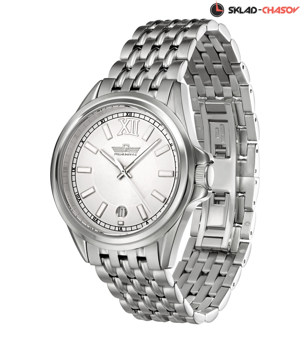Циферблат - эмаль с накладными знаками. Корпус и браслет выполнены из высококачественной нержавеющей стали. Модель есть и в позолоте.