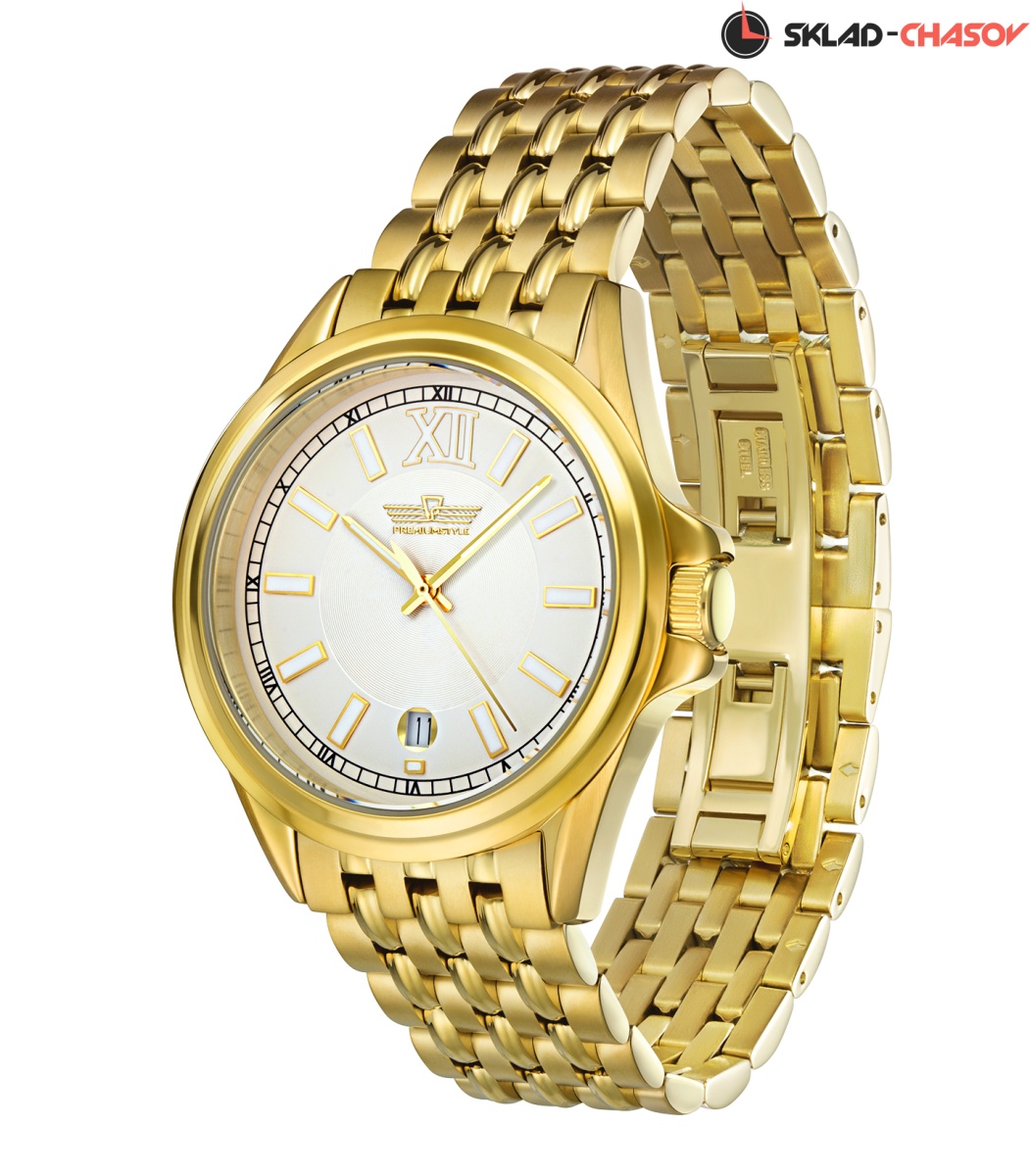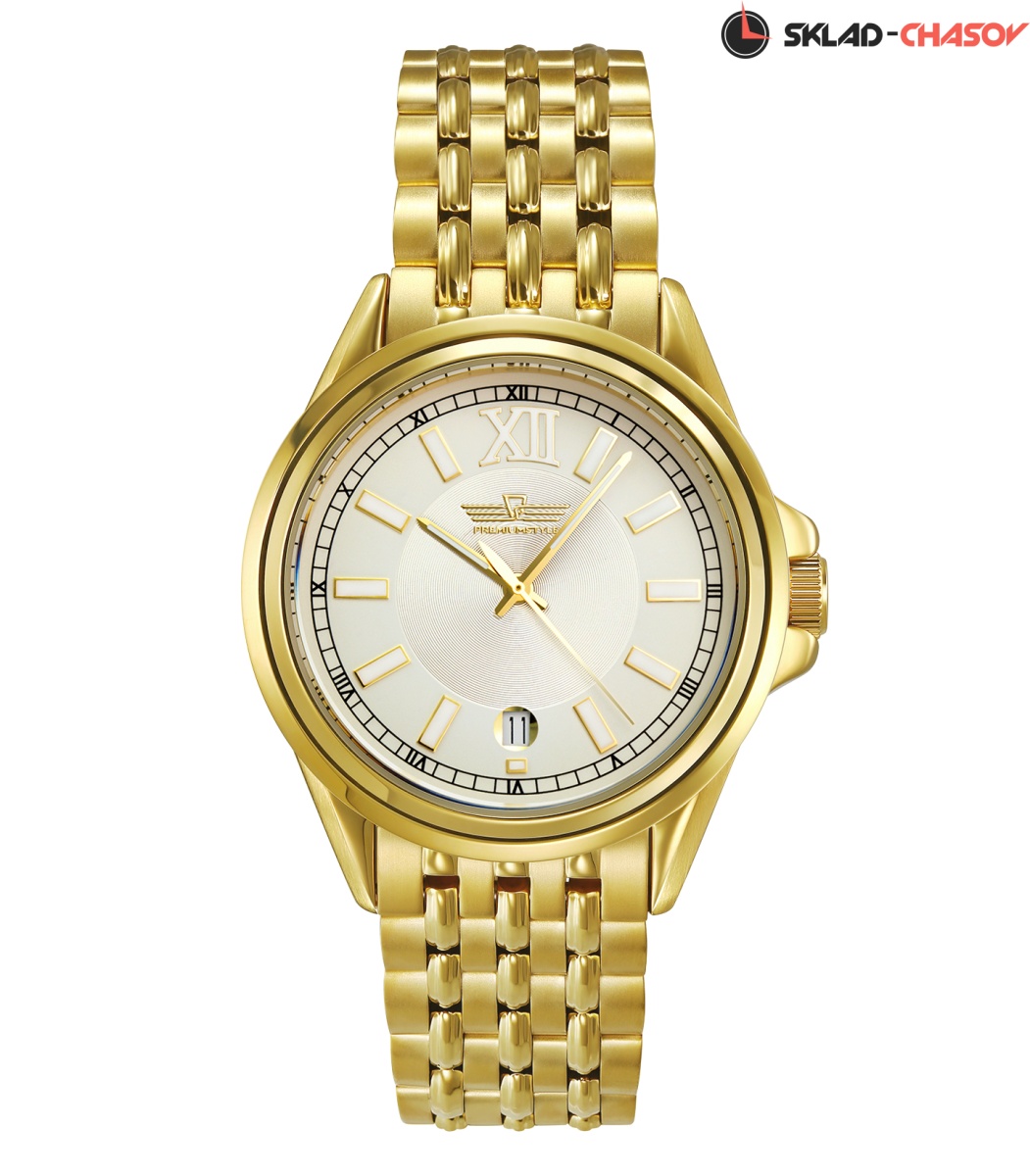 Циферблат - эмаль с накладными знаками. Корпус и браслет выполнены из позолота. Модель есть и в стали.