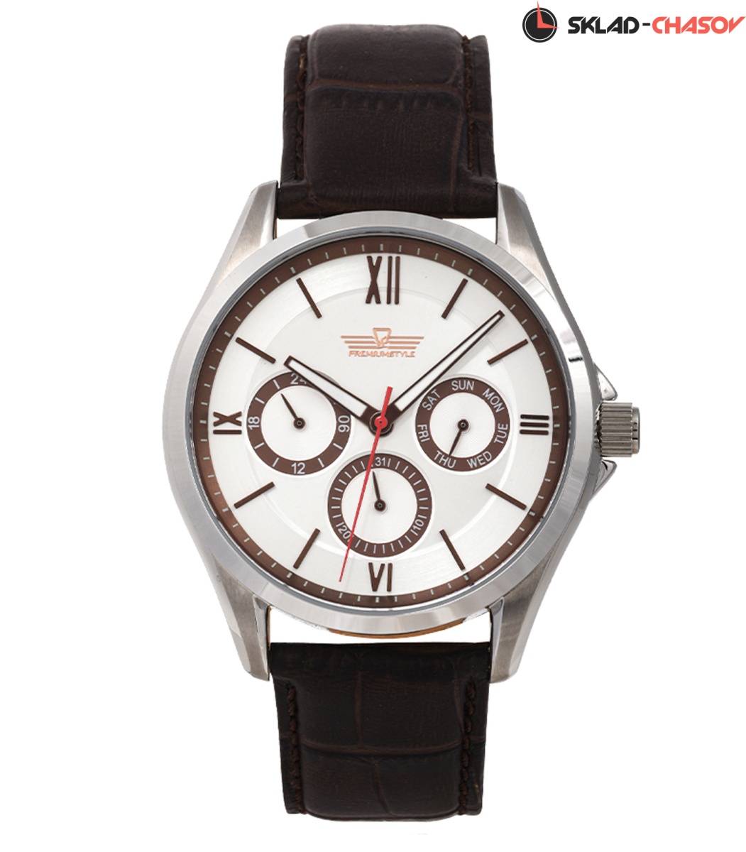 Часы оснащены механизмом SEIKO с центральными секундной, минутной и часовой стрелками и стрелочной индикацией дня недели, числа месяца и 24-шкалой. Точность хода +-20сек/мес.