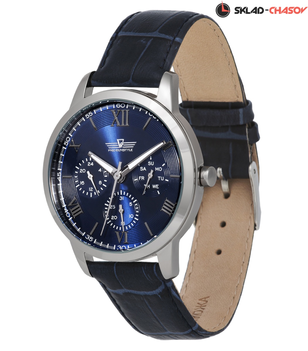 Часы Premiumstyle оснащены японским механизмом SEIKO с центральными секундной, минутной и часовой стрелками, стрелочной индикацией дня недели, числа месяца и 24-шкалой. Люминесцентные стрелки позволяют использовать часы в темное время суток.