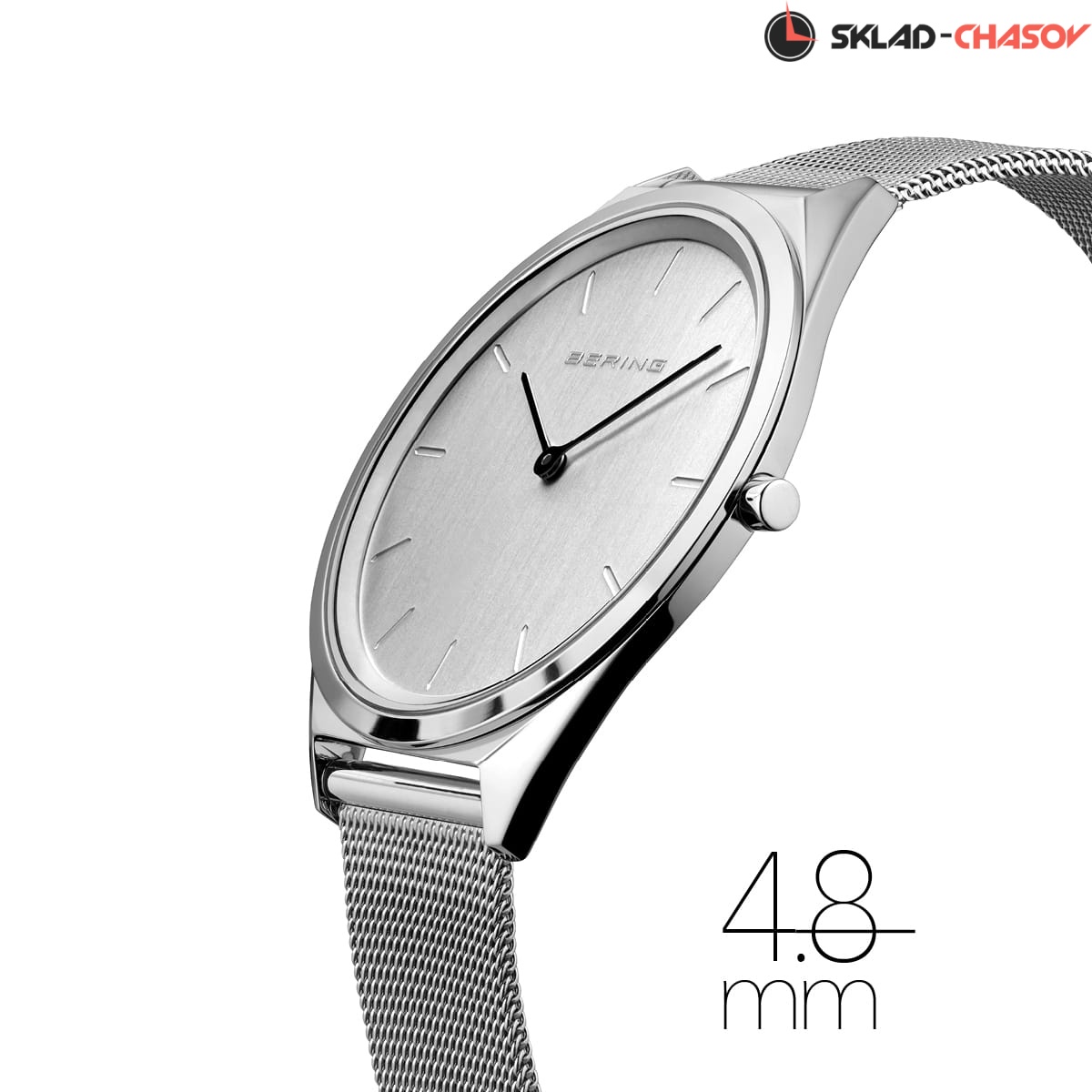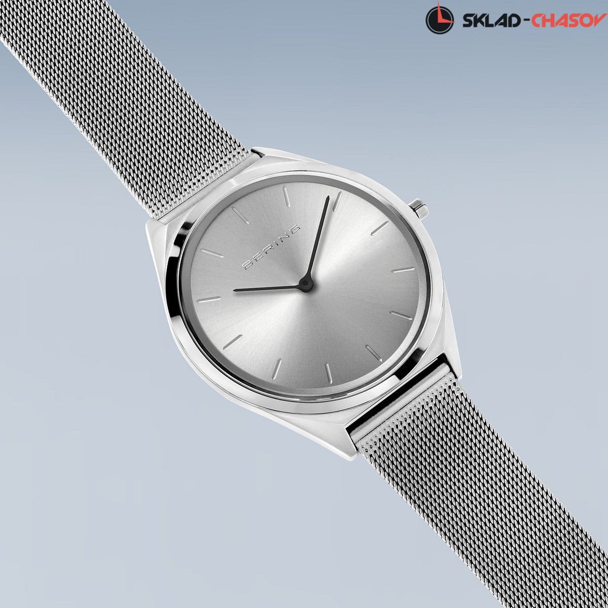 Ультратонкие мужские наручные часы Bering на стальном браслете миланского плетения.          Гарантия 3 года.