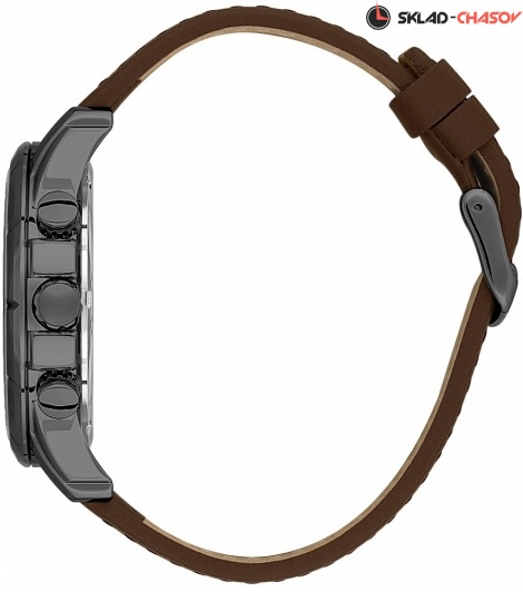 На отдельные малые циферблаты вынесены стрелочные показания числа, дня недели и отображение времени в 12-ти/24-х часовом формате.