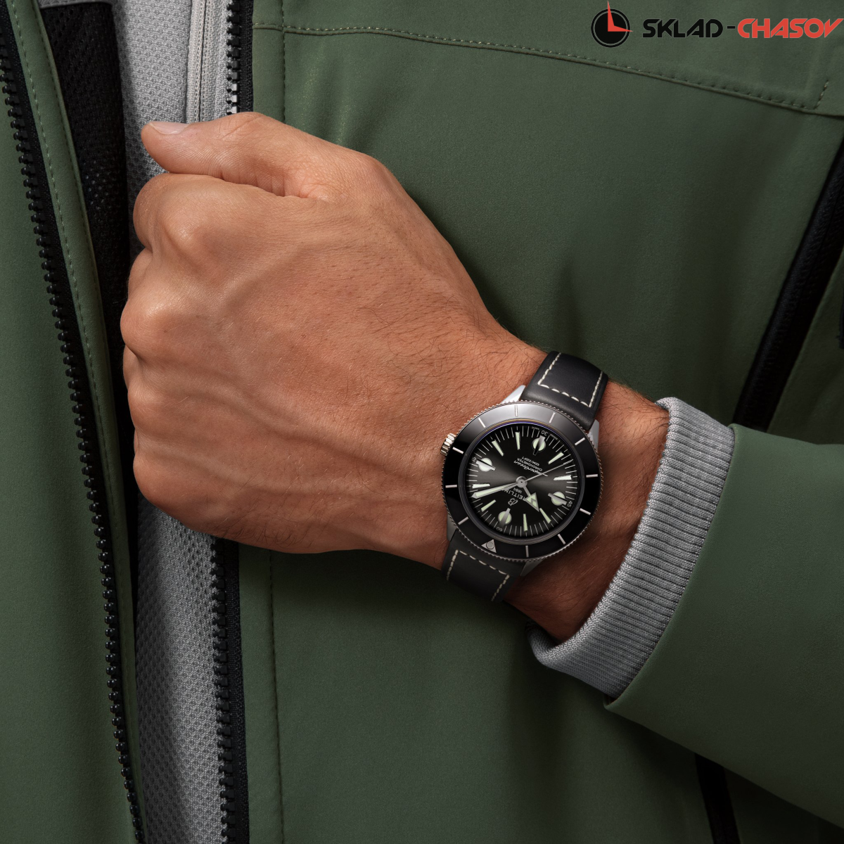 Модель посвящена оригинальным часам из коллекции SuperOcean 1957 года. Стильные и непринужденные, напоминающие серфингистов 60-х годов. Вогнутый двунаправленный керамический безель и циферблат с увеличенными индексами. Задняя крышка с гравировкой. COSC хронометр.