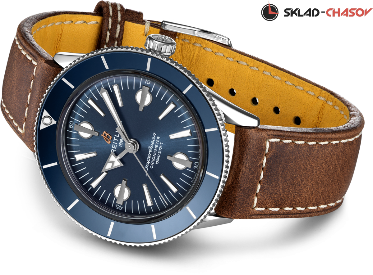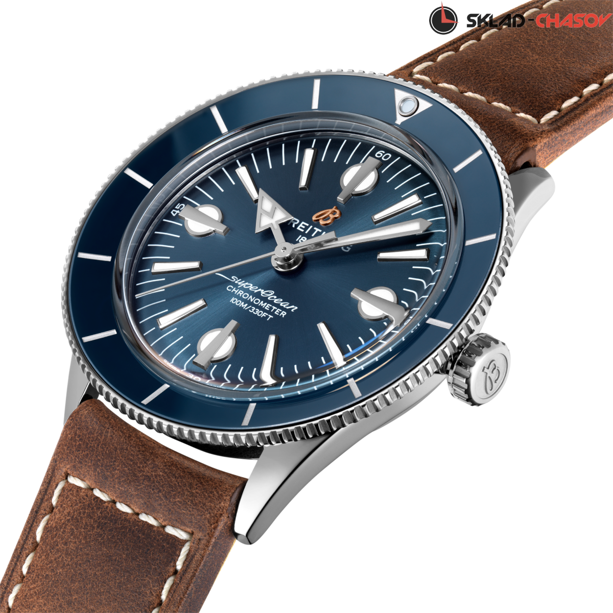 Модель посвящена оригинальным часам из коллекции SuperOcean 1957 года. Стильные и непринужденные, напоминающие серфингистов 60-х годов. Вогнутый двунаправленный керамический безель и циферблат с увеличенными индексами. Задняя крышка с гравировкой. COSC хронометр.
