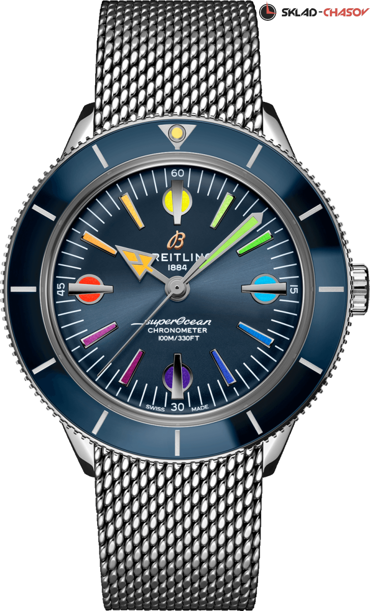 Лимитированная серия - 1000 шт. Модель посвящена оригинальным часам из коллекции SuperOcean 1957 года. Стильные и непринужденные, напоминающие серфингистов 60-х годов. Вогнутый двунаправленный керамический безель и циферблат с увеличенными индексами. Задняя крышка с гравировкой. COSC хронометр.