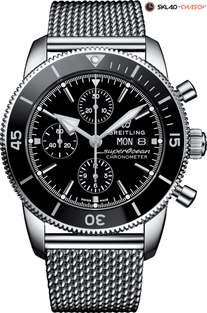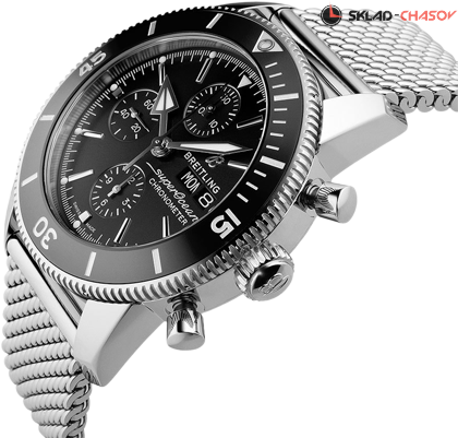 Superocean Heritage II Chronograph , Хронограф, вращающийся безель с разметкой, окошко даты и дня недели в положении 3 часа, завинчивающаяся заводная головка. Хронометр C.O.S.C.