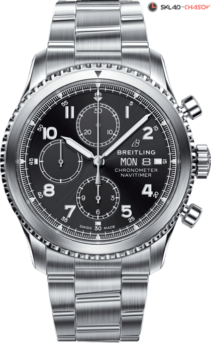 Мужской механический хронограф, малая секундная стрелка в положении 9 часов, окошко дня недели и даты в положении 3 часа, хронометр C.O.S.C.