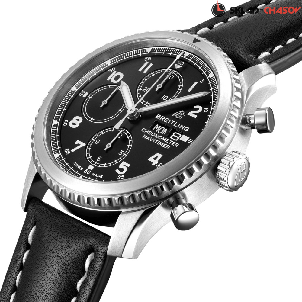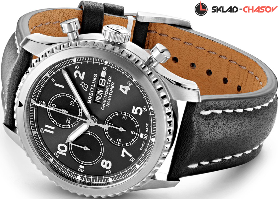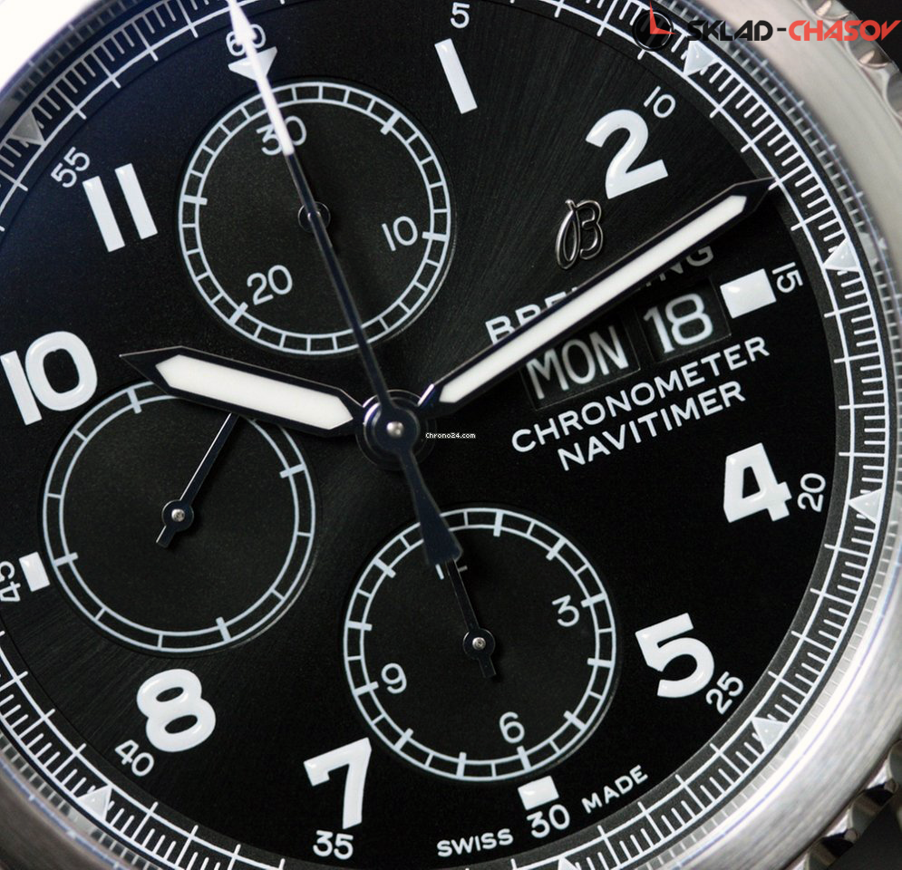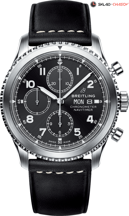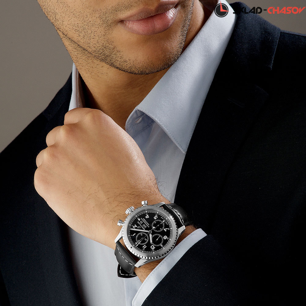 Мужской механический хронограф, малая секундная стрелка в положении 9 часов, окошко дня недели и даты в положении 3 часа, хронометр C.O.S.C.