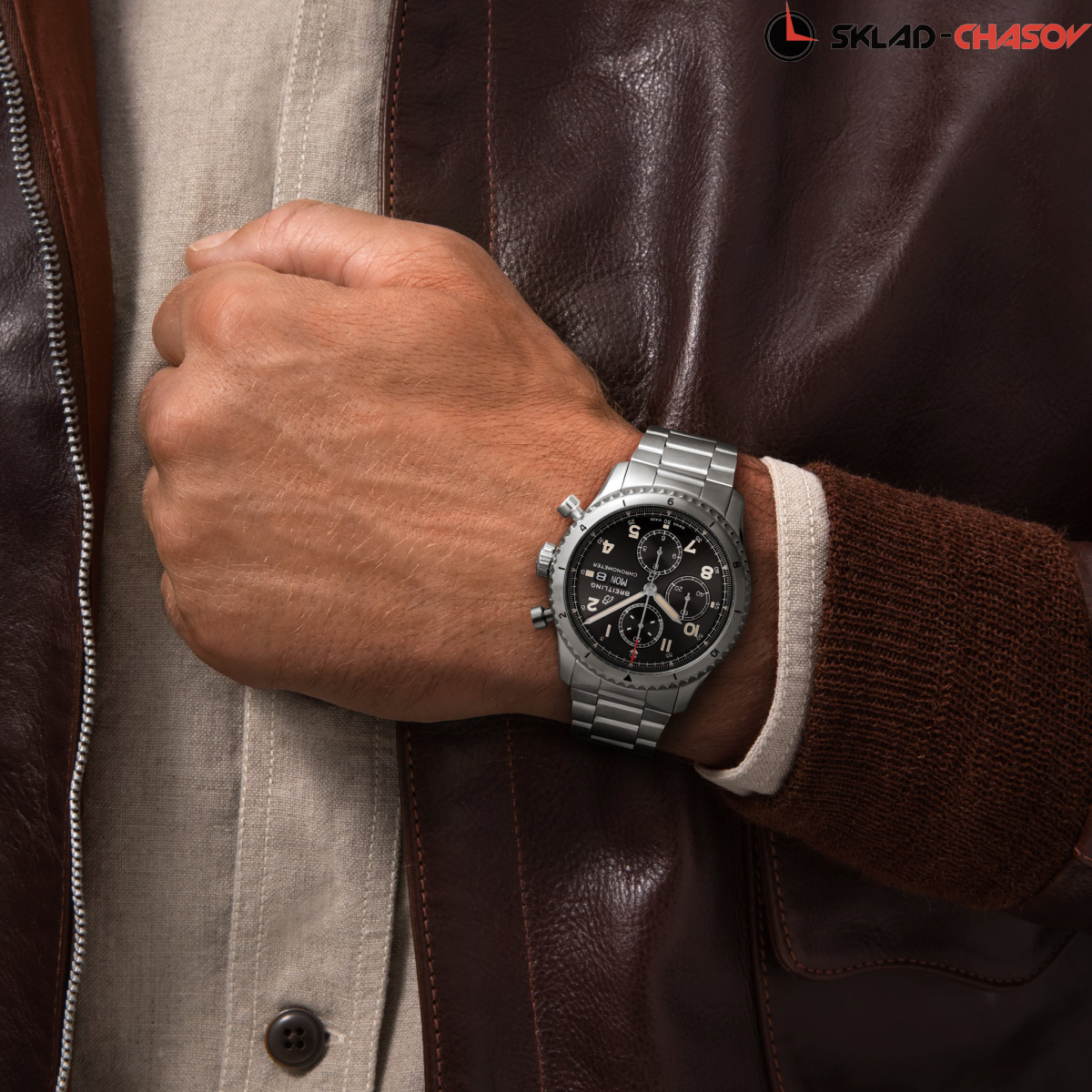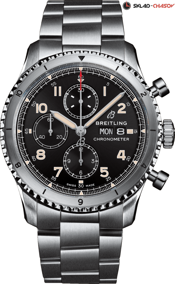 Мужской механический хронограф, индикация даты и месяца в положении 3 часа, малая секундная стрелка в положении 9 часов, двунаправленный вращающийся безель. Сертификат C.O.S.C.