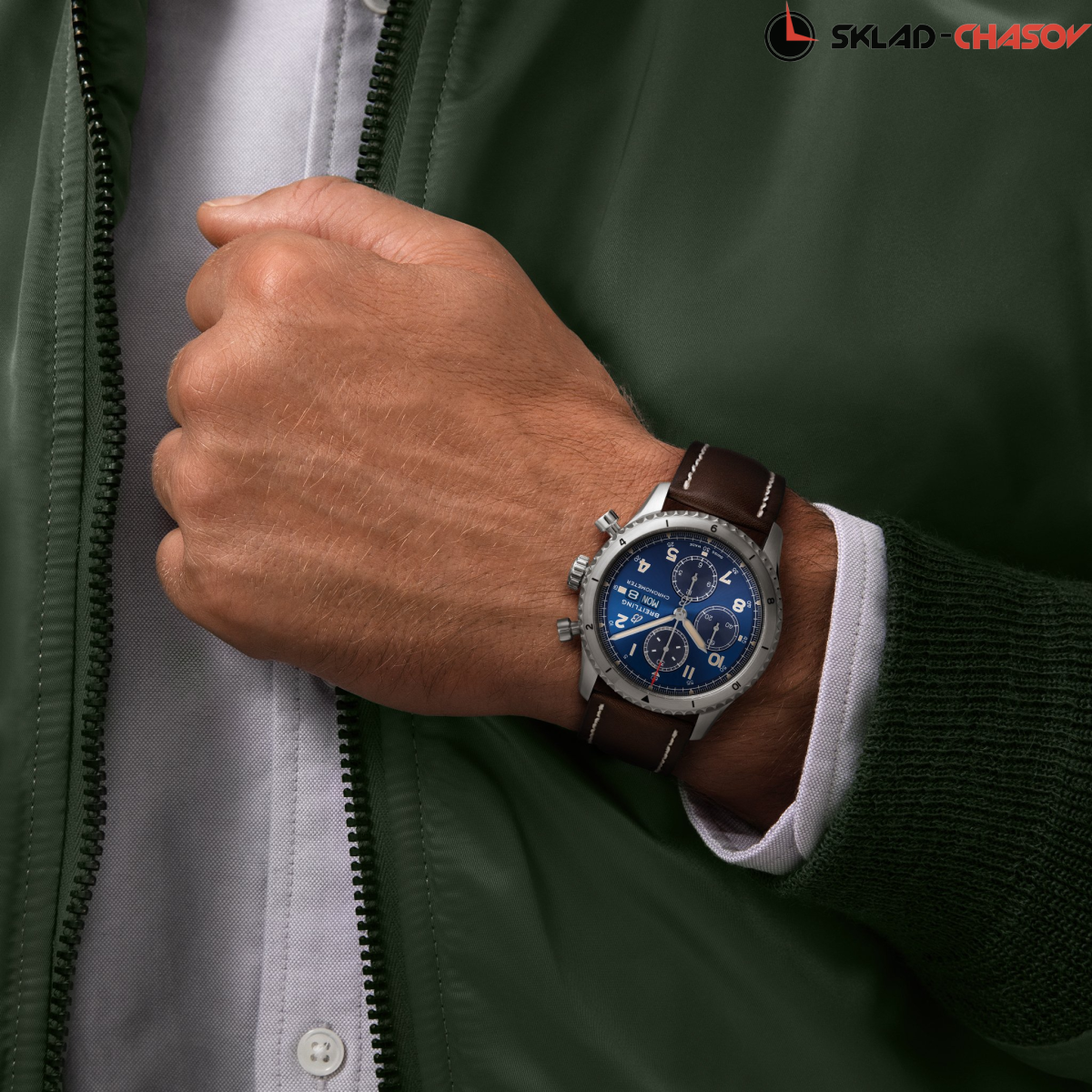 Мужской механический хронограф, индикация даты и месяца в положении 3 часа, малая секундная стрелка в положении 9 часов, двунаправленный вращающийся безель. Сертификат C.O.S.C.