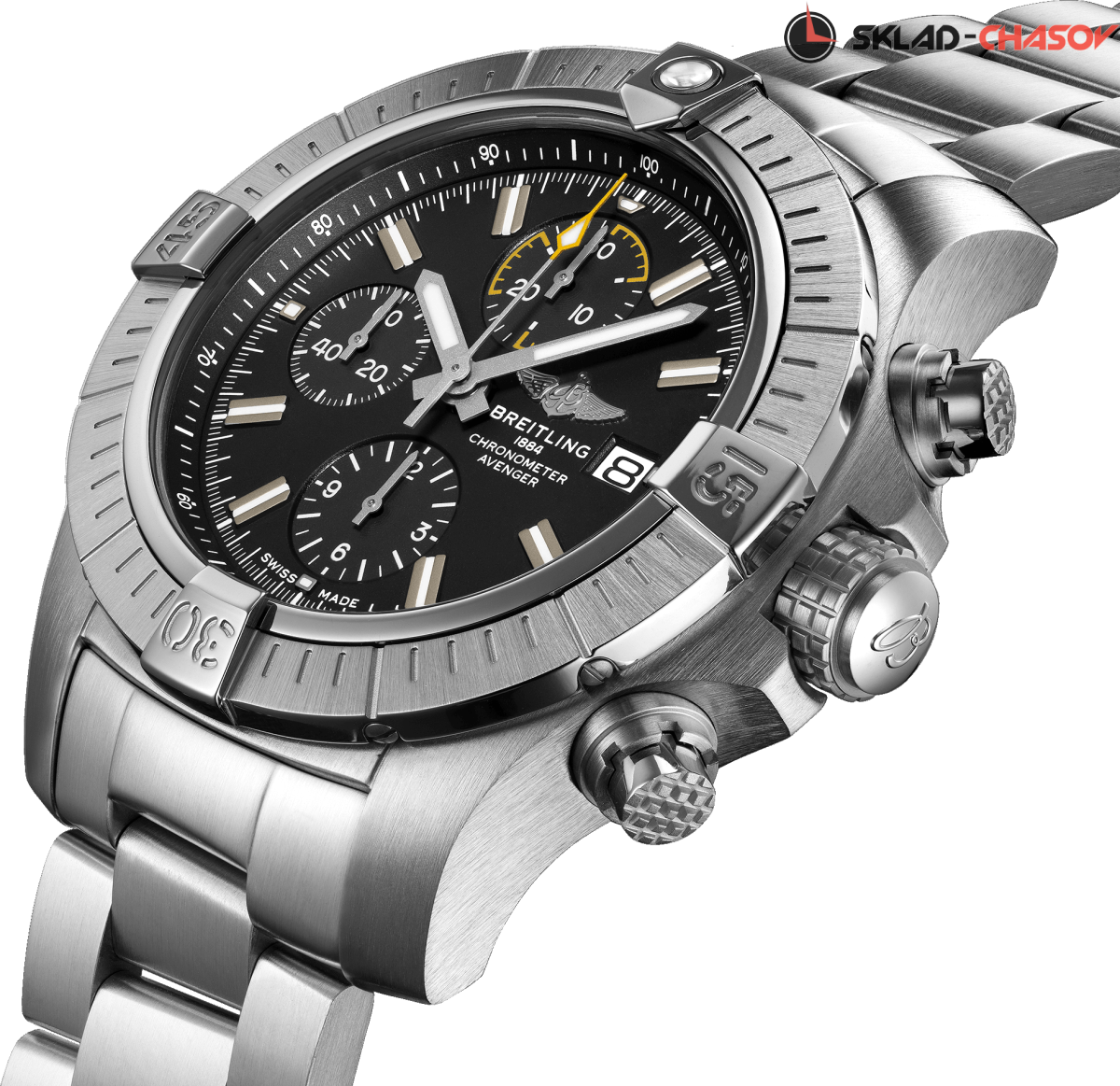 Мужская механическая модель с автоподзаводом. Хронометр C.O.S.C., трехсекционный хронограф, вынесенная секундная стрелка, завинчивающаяся заводная коронка, безель однонаправленного вращения