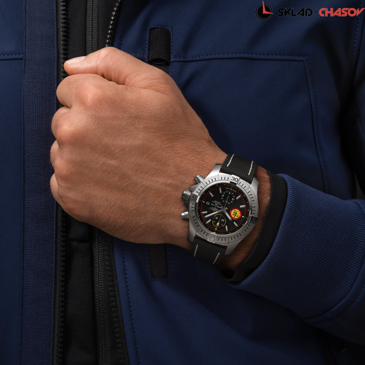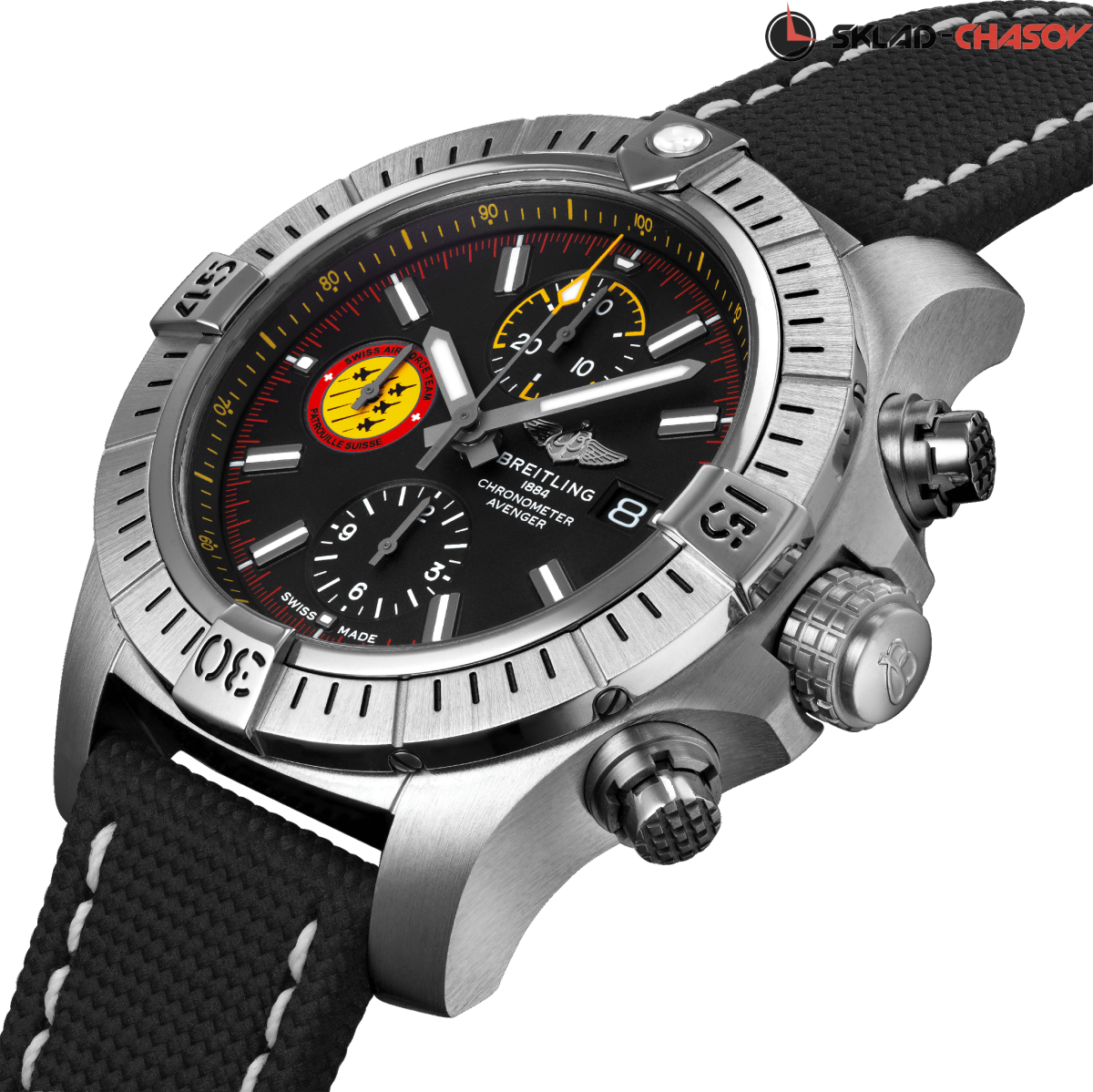 Выпуск хронографа приурочен к 55- летнему юбилею швейцарской команды ВВС Patrouille Suisse. Модель выпущена ограниченной серией из 550 экземпляров. На дополнительном циферблате на отметке 9 часов имеется логотип эскадрильи Patrouille Suisse, а также характерные желтые и красные акценты, которые отражают цвета логотипа пилотажной группы. Гравировка на задней крышке - стилизованное изображение с цифрой 55 и шестью сверхзвуковыми самолетами в полете - вместе со словами «ONE OF 550».Специальный лимитированный выпуск Avenger представлен на военном ремешке из антрацитовой кожи с застежкой на кнопке.