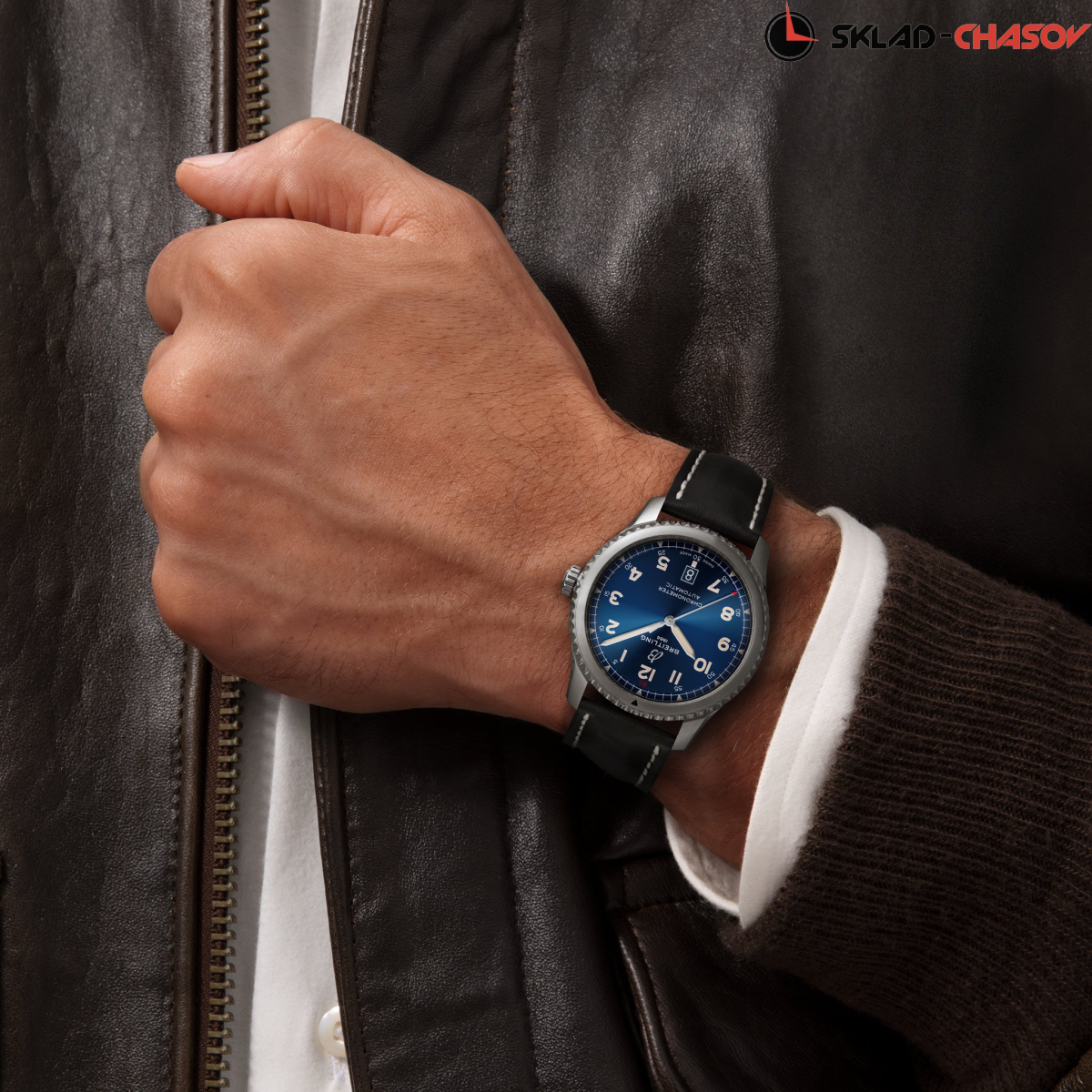 Прямой потомок легендарных часов Breitling 1930-40-х годов. Мужская механическая модель с автоподзаводом. Индикация даты в положении 6 часов. Сертификат C.O.S.C.