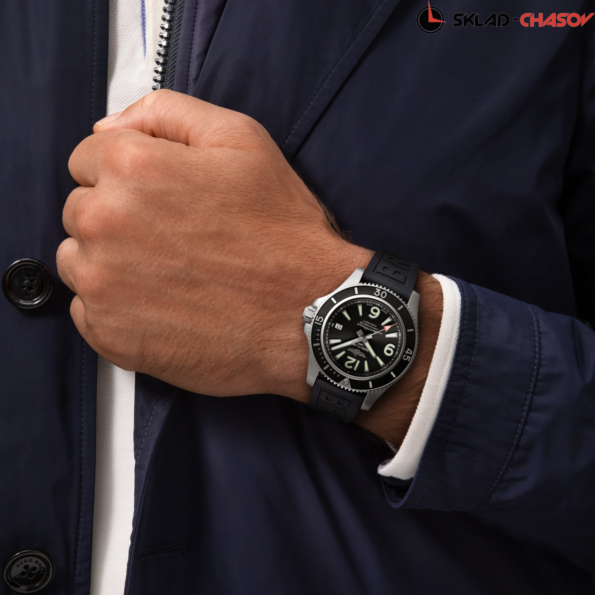 Мужская механическая модель с автоподзаводом. Часы для активного, современного дайвера в комплекте с защелкивающимся безелем однонаправленного вращения. Окошко даты в положении 3 часа. Покрытие Super-LumiNova на стрелках и разметке.