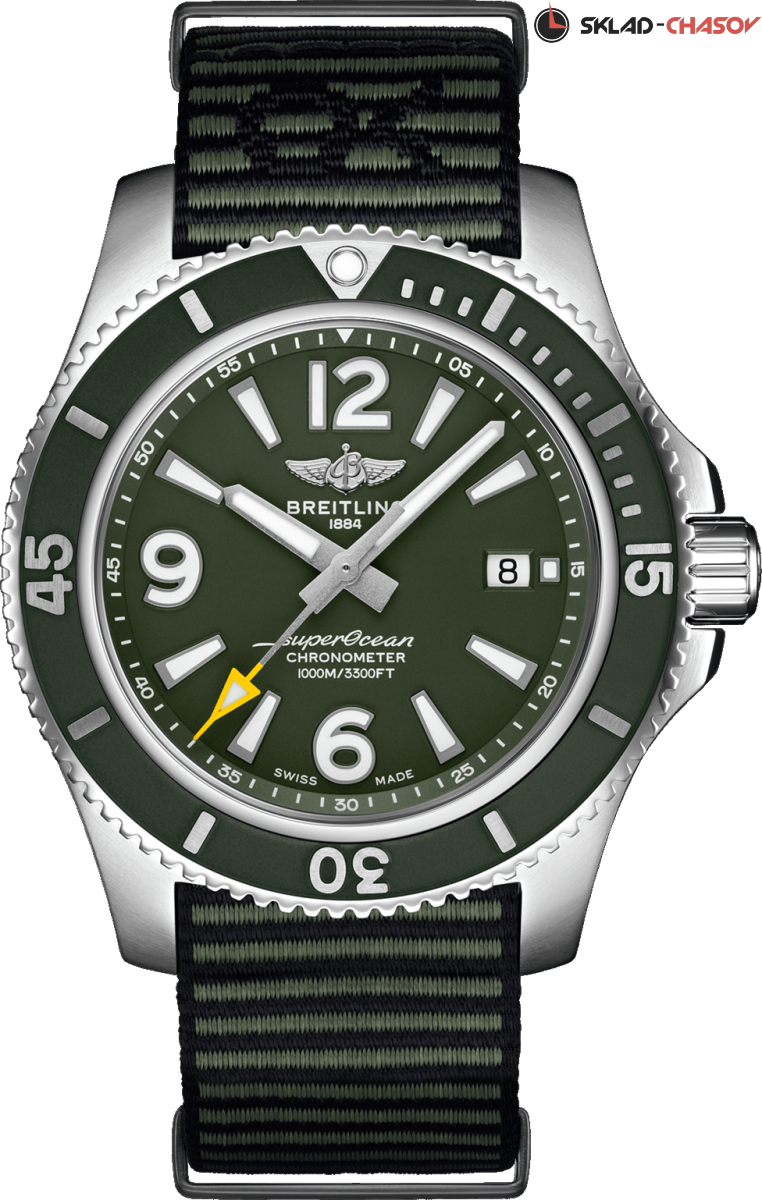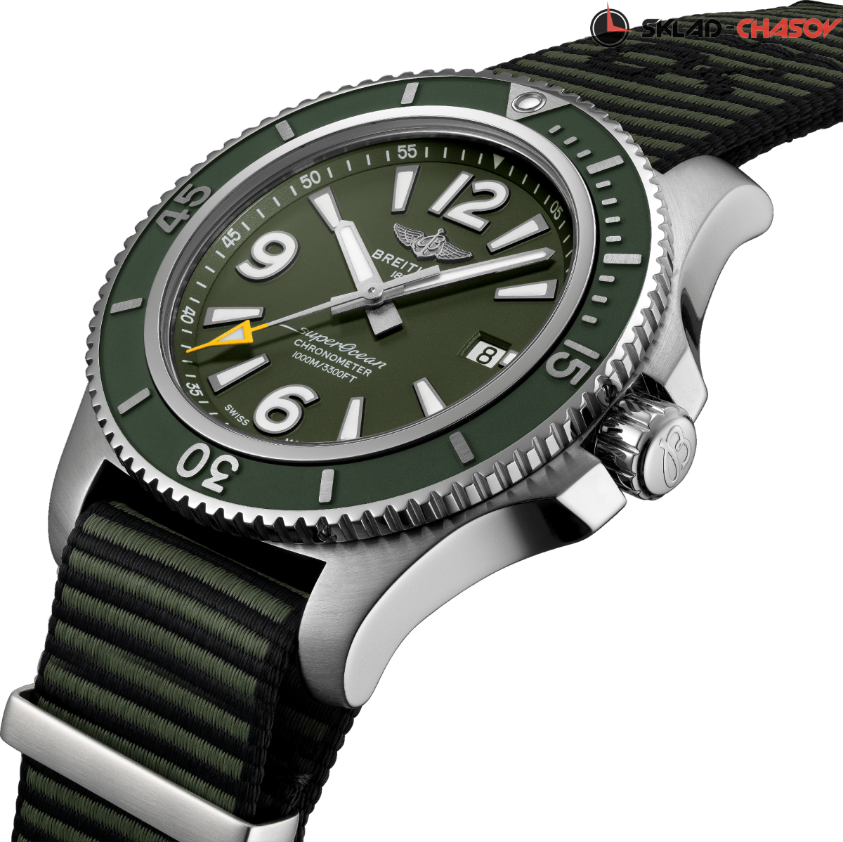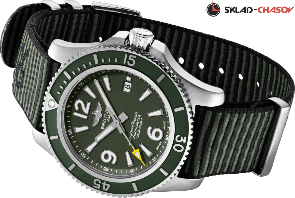 Мужская механическая модель с автоподзаводом, посвященная партнерству с производителем устойчивой одежды Outerknown. Хронометр C.O.S.C., индикация часов, минут и секунд центральными стрелками, окошко даты в положении 3 часа, завинчивающаяся заводная коронка, безель однонаправленного вращения, автоматический гелиевый клапан.