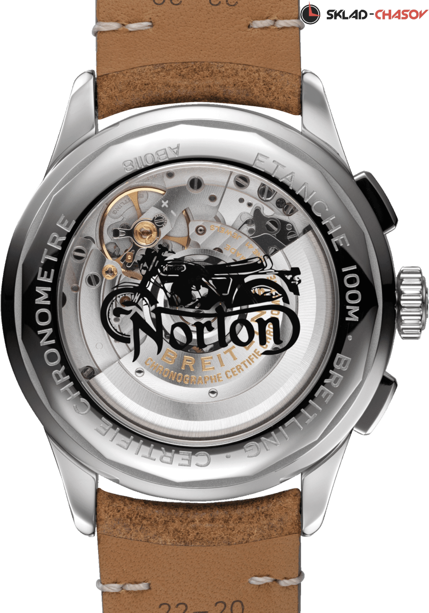 Специальная серия, посвященная партнерству Breitling с легендарным британским производителем мотоциклов Norton. Мужской двухсекционный хронограф с автоподзаводом, апертура даты в районе 6 часов, хронометр C.O.S.C., тахиметрическая шкала. На боку корпуса находится табличка с выгравированной надписью «Norton», прозрачная задняя крышка с логотипом и рисунком мотоцикла.