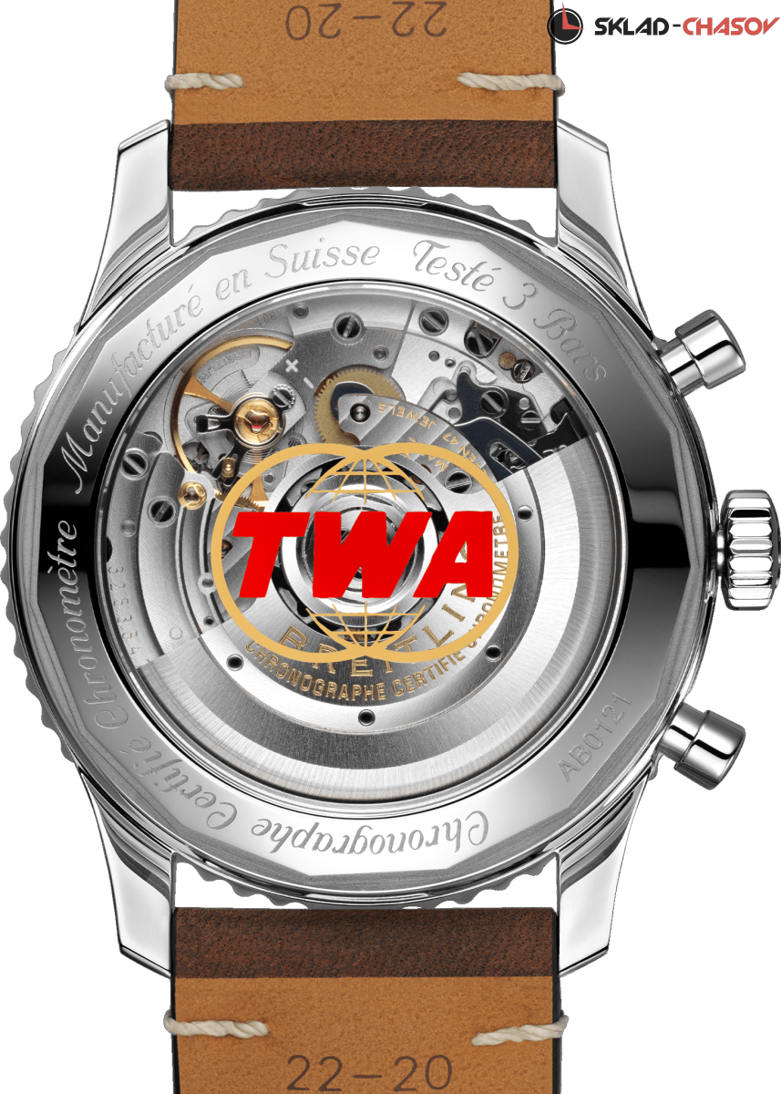 Авиакомпания Trans World Airlines, базирующаяся в США, являлась одной из крупнейших внутренних авиакомпаний в стране, конкурировала с Pan American World Airways. TWA отвечала за значительный объём международных перевозок военного имущества на важнейших авиалиниях. Мужской механический хронограф с автоподзаводом, апертура даты в районе 4 часов, логарифмическая линейка, прозрачная задняя крышка, сертификат C.O.S.C.
