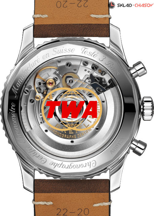 Авиакомпания Trans World Airlines, базирующаяся в США, являлась одной из крупнейших внутренних авиакомпаний в стране, конкурировала с Pan American World Airways. TWA отвечала за значительный объём международных перевозок военного имущества на важнейших авиалиниях. Мужской механический хронограф с автоподзаводом, апертура даты в районе 4 часов, логарифмическая линейка, прозрачная задняя крышка, сертификат C.O.S.C.