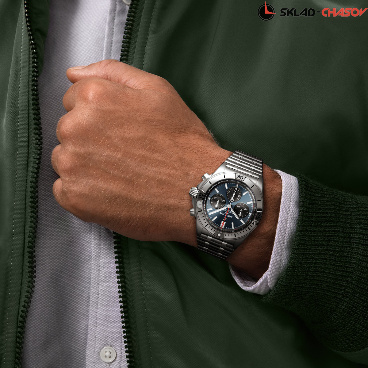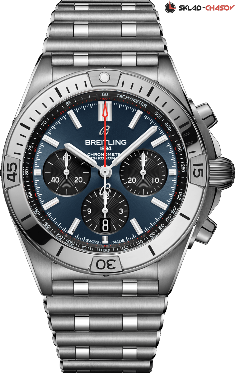 Мужской механический хронограф с автоподзаводом, однонаправленный безель с культовыми вкладками. Секундная стрелка с логотипом на конце. Тахиметрическая шкала. Апертура даты в положении 6 часов. Хронометр C.O.S.C.