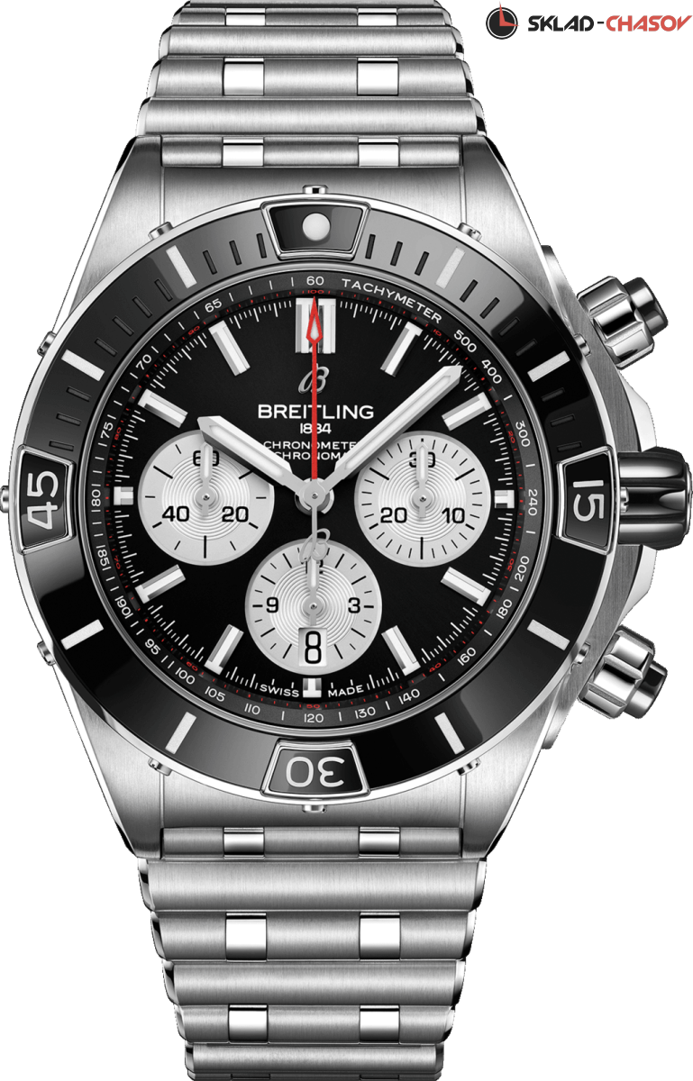 Часы Super Chronomat созданы по мотивам оригинальной модели Chronomat 80-х годов. Модель отличает керамическая инкрустация на безеле, кнопках хронографа и заводной головке. Кроме того, их дополняет каучуковый ремешок в стиле Rouleaux. Эти универсальные спортивные часы на все случаи жизни. Модель оснащена мануфактурным калибром Breitling 01, сертифицированным Швейцарским институтом официального тестирования хронометров (COSC).