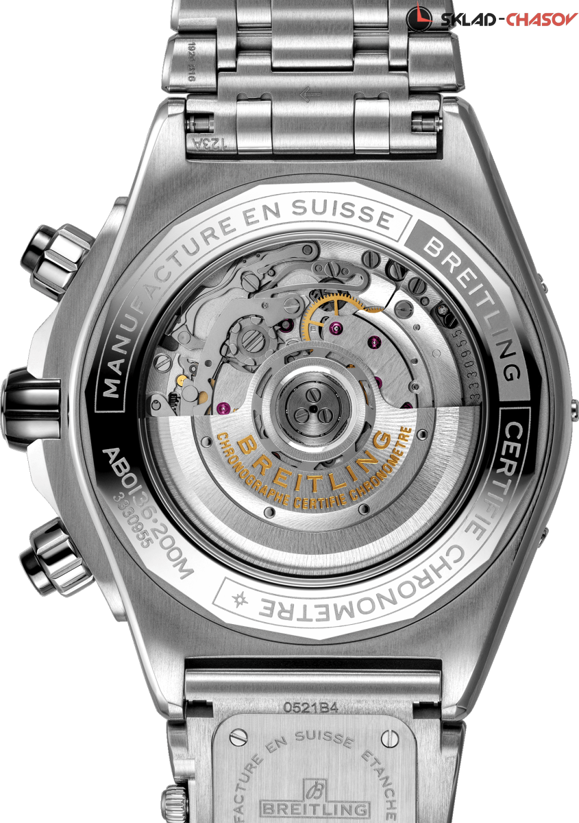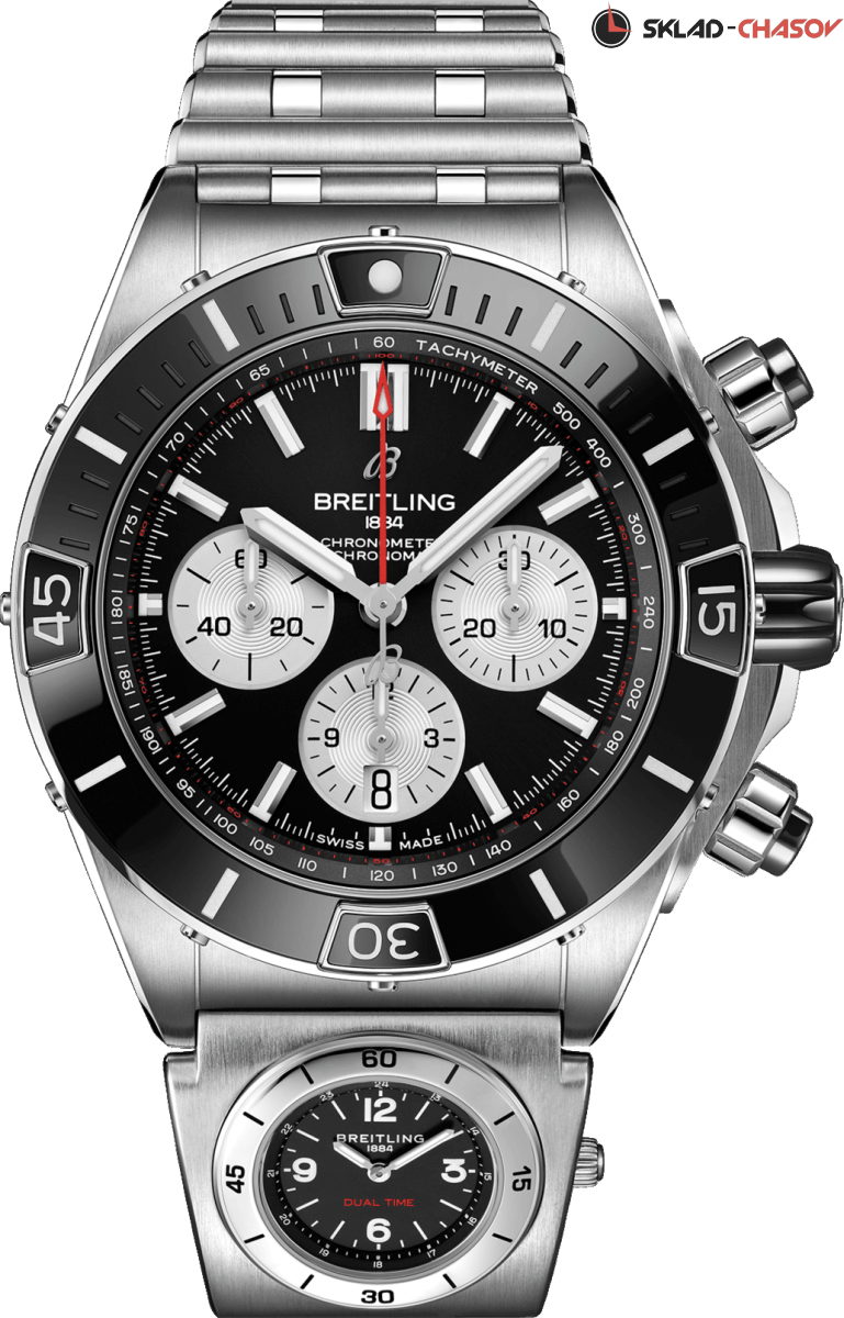 Часы Super Chronomat созданы по мотивам оригинальной модели Chronomat 80-х годов. Модель отличает керамическая инкрустация на безеле, кнопках хронографа и заводной головке. Также в браслет Rouleaux встроен модуль UTC. Модуль Universal Time Coordinated, позволяющий отслеживать время во втором часовом поясе. Эти универсальные спортивные часы на все случаи жизни. Модель оснащена мануфактурным калибром Breitling 01, сертифицированным Швейцарским институтом официального тестирования хронометров (COSC).