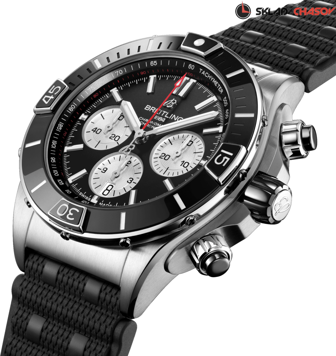 Часы Super Chronomat созданы по мотивам оригинальной модели Chronomat 80-х годов. Модель отличает керамическая инкрустация на безеле, кнопках хронографа и заводной головке. Кроме того, их дополняет каучуковый ремешок в стиле Rouleaux. Эти универсальные спортивные часы на все случаи жизни. Модель оснащена мануфактурным калибром Breitling 01, сертифицированным Швейцарским институтом официального тестирования хронометров (COSC).