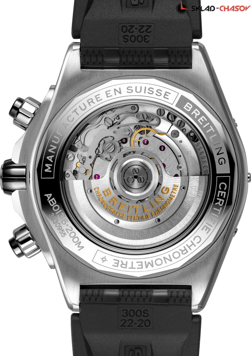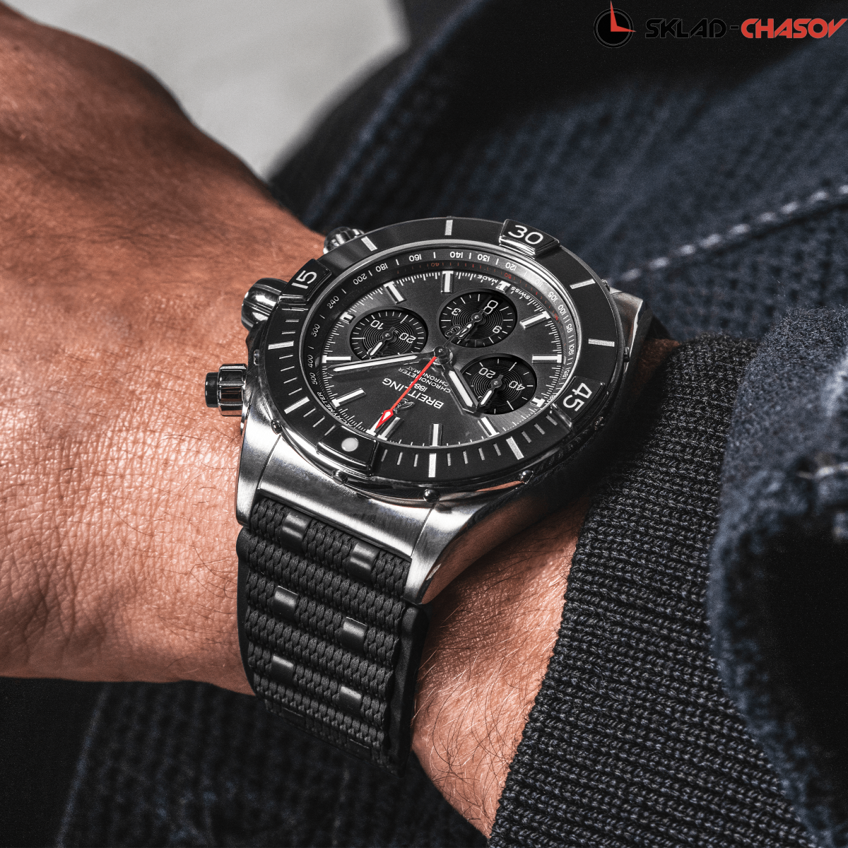 Часы Super Chronomat созданы по мотивам оригинальной модели Chronomat 80-х годов. Модель отличает керамическая инкрустация на безеле, кнопках хронографа и заводной головке. Кроме того, их дополняет каучуковый ремешок в стиле Rouleaux. Эти универсальные спортивные часы на все случаи жизни. Модель оснащена мануфактурным калибром Breitling 01, сертифицированным Швейцарским институтом официального тестирования хронометров (COSC).