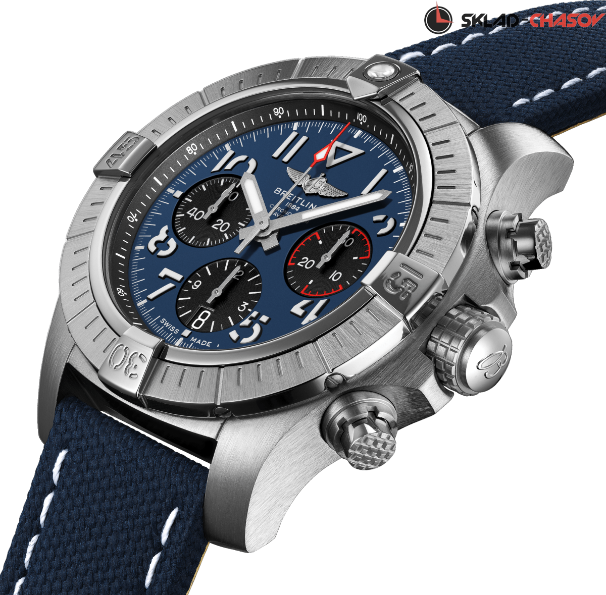 Мужской механический хронограф с автоподзаводом, выполнен из нержавеющей стали диаметром 45 мм. Синий циферблат, однонаправленный безель с культовыми вкладками. Тахиметрическая шкала. Хронометр C.O.S.C.