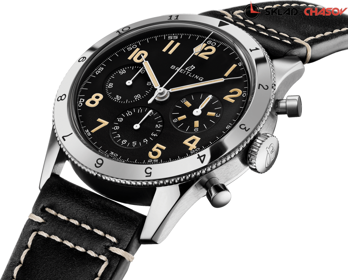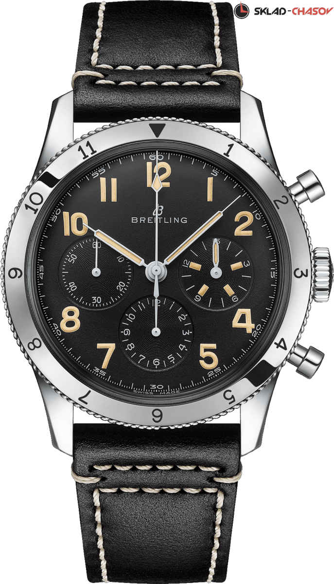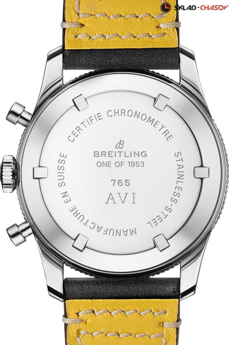Лимитированная серия - 1953 шт. Переиздание модели часов Breitling 1953 г., мужской механический хронограф. 15-минутный счетчик имеет характерные люминесцентные индексы каждые три минуты, еще в 1950-х годах они оказывали неоценимую помощь пилотам в проверке самолета, которая не должна была превышать 15 минут.