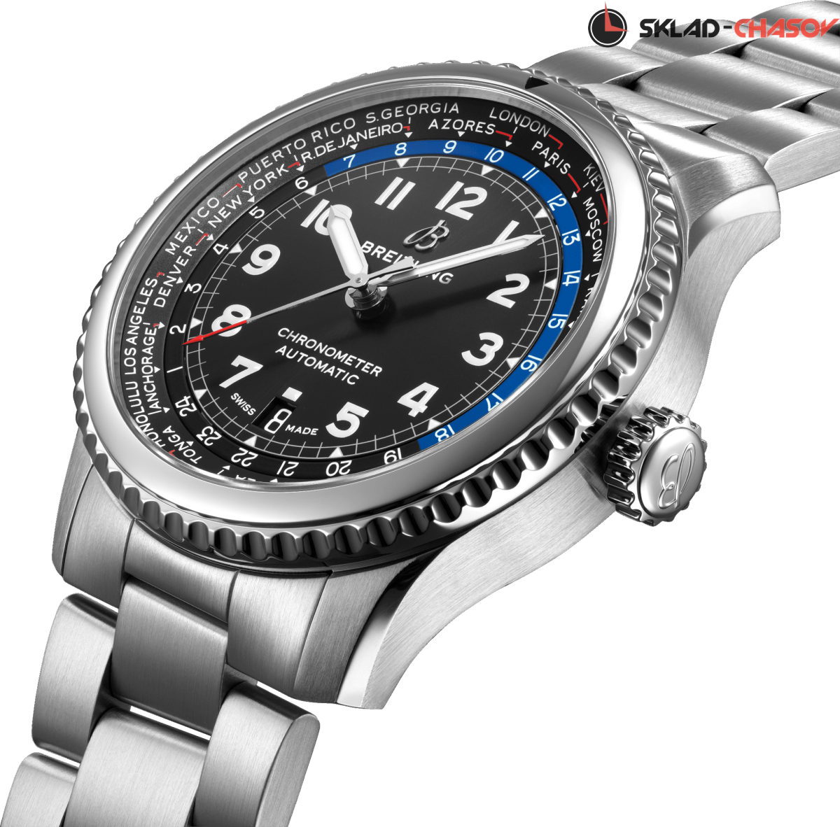 Мужская модель с индикацией второго часового пояса GMT, окошко даты в положении 6 часов, хронометр C.O.S.C.