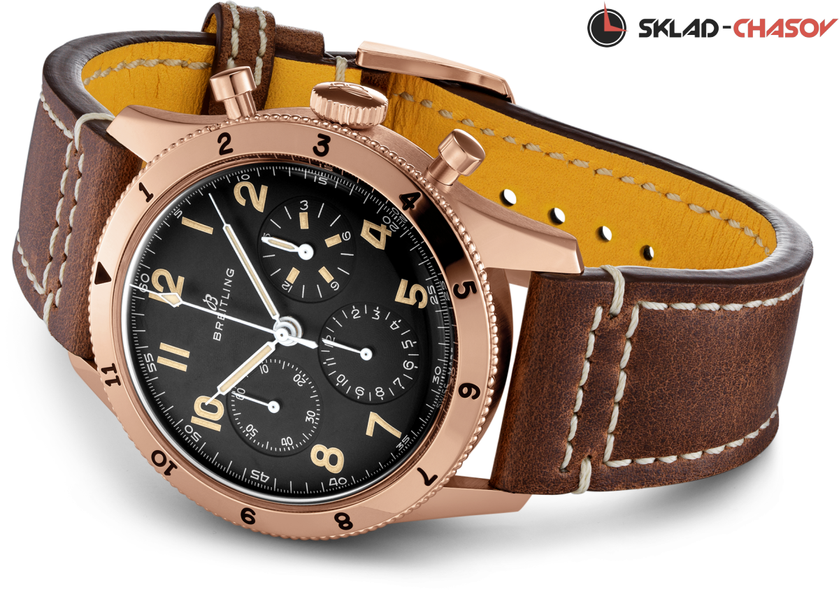 Лимитированная серия - 253 шт. Переиздание модели часов Breitling 1953 г., мужской механический хронограф. 15-минутный счетчик имеет характерные люминесцентные индексы каждые три минуты, еще в 1950-х годах они оказывали неоценимую помощь пилотам в проверке самолета, которая не должна была превышать 15 минут.