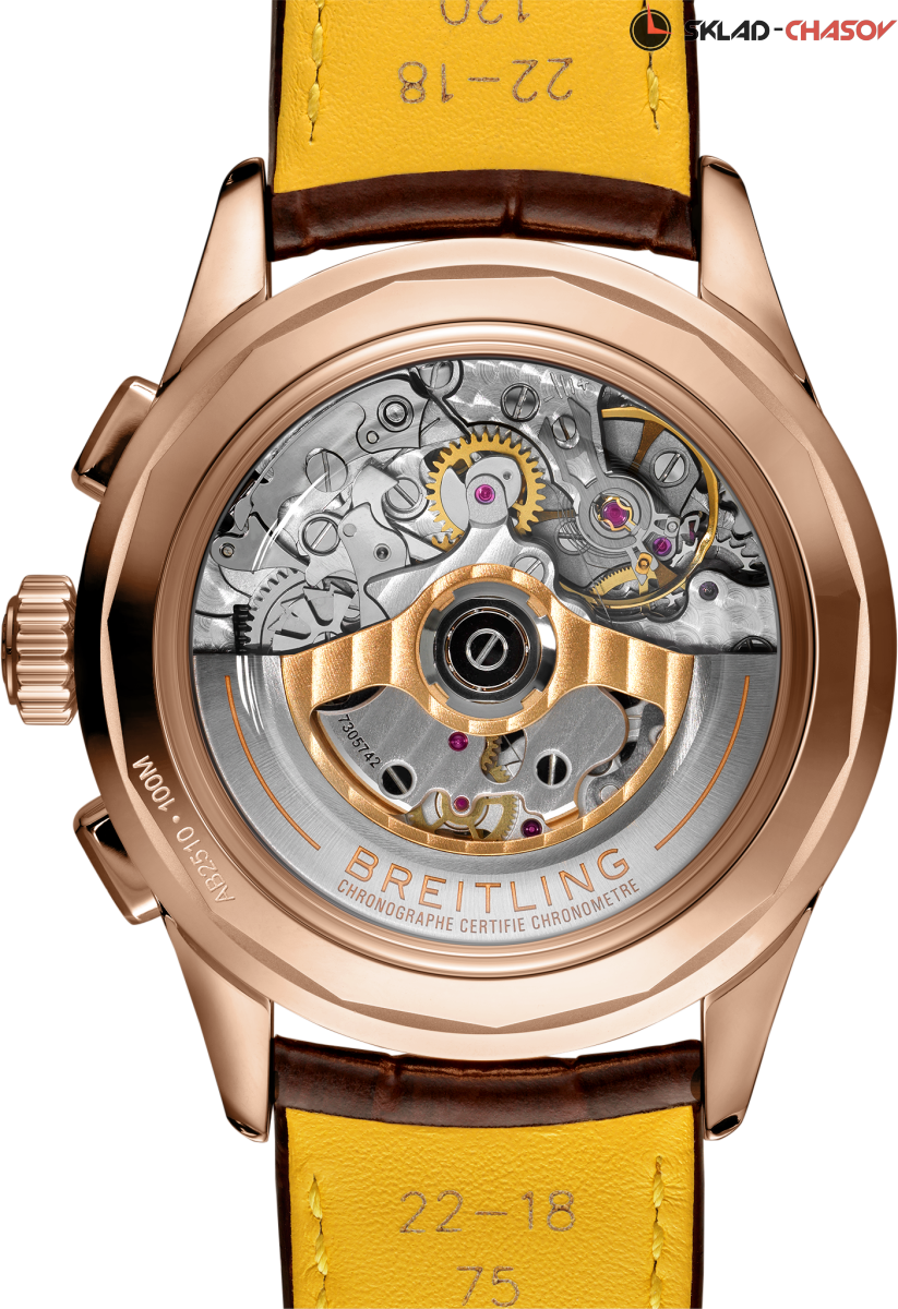 Мужской хронограф с полным календарем и индикацией фаз Луны. Оcоснащен мануфактурным механизмом Breitling B25 автоматическим подзаводом, хронометр C.O.S.C., тахиметрическая шкала, прозрачная задняя крышка.