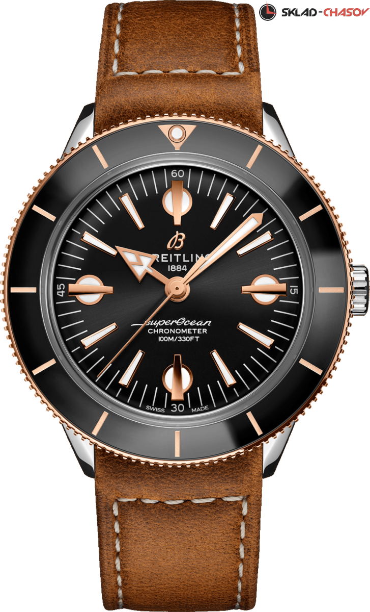 Модель посвящена оригинальным часам из коллекции SuperOcean 1957 года. Стильные и непринужденные, напоминающие серфингистов 60-х годов. Вогнутый двунаправленный керамический безель и циферблат с увеличенными индексами. Задняя крышка с гравировкой. COSC хронометр.