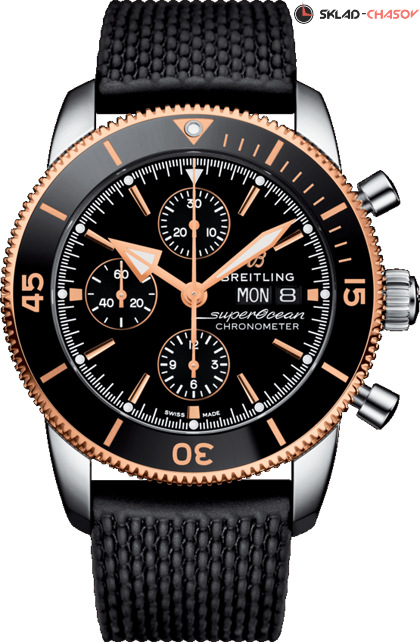 Superocean Heritage II Chronograph , Хронограф, вращающийся безель с разметкой, окошко даты и дня недели в положении 3 часа, завинчивающаяся заводная головка. Хронометр C.O.S.C.