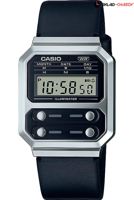 Электронные кварцевые наручные часы Casio Vintage A100WEL-1A с цифровой индикацией времени. Калибр механизма — 3503. Функциональность данной модели: формат времени — 12 часовой, автоматический календарь, будильник, сигнал начала часа, секундомер с точностью 1/10 секунды и измерением до 59 минут 59,99 cек., диодная подсветка циферблата. Кожаный ремешок. Водонепроницаемость WR (3 атм).