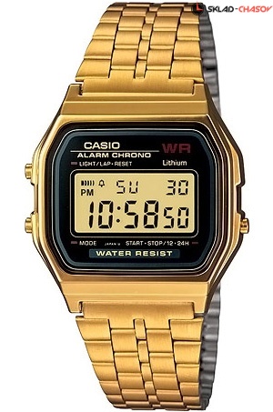 Электронные кварцевые мужские наручные часы Casio Vintage A159WGEA-1 с цифровой индикацией времени. Калибр механизма — 593. Функциональность данной модели: формат времени 12/24, автоматический календарь с установкой 28 дней на февраль, будильник, сигнал начала часа, секундомер с точностью 1/100 секунды и измерением до 59 минут 59,99 cек., диодная подсветка циферблата.