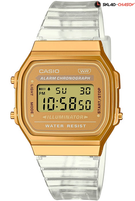Электронные кварцевые наручные часы Casio Vintage A168XESG-9A с цифровой индикацией времени. Калибр механизма — 3298. Функциональность данной модели: формат времени 12/24, автоматический календарь с установкой 28 дней на февраль, будильник, сигнал начала часа, секундомер с точностью 1/100 секунды и измерением до 59 минут 59,99 cек., электролюминесцентная подсветка циферблата. Полимерный ремешок. Инверсный циферблат. Водонепроницаемость WR (3 атм).
