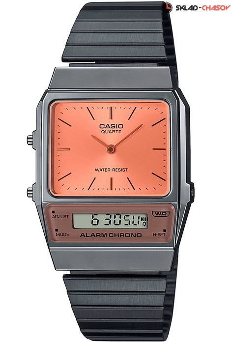 Кварцевые наручные часы Casio AQ-800ECGG-4A с цифровой+стрелочной индикацией времени. Калибр механизма — 5696. Функциональность данной модели: формат времени 12/24, функция двойного времени, автоматический календарь с установкой 28 дней на февраль, будильник, сигнал начала часа, секундомер с точностью 1/100 секунды и измерением до 59 минут 59,99 cек. Стальной браслет. На браслет нанесено стойкое PVD покрытие. Водонепроницаемость WR (3 атм).