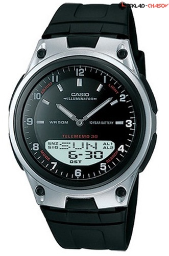 Кварцевые мужские наручные часы Casio AW-80-1A с цифровой+стрелочной индикацией времени. Калибр механизма — 2747. Функциональность данной модели: формат времени 12/24, функция летнего времени (DST), мировое время 30 городов (29 часовых поясов), вечный календарь до 2099 года, 3 независимых будильника, сигнал начала часа, секундомер с точностью 1/100 секунды и измерением до 23 часов 59 минут 59,99 cек., таймер обратного отсчета (диапазон времени 24 часа), записная книжка телефонных номеров на 30 записей, диодная подсветка циферблата и люминесцентное напыление на стрелках. Водонепроницаемость WR50 (5 атм). Батарейка на 10 лет работы.