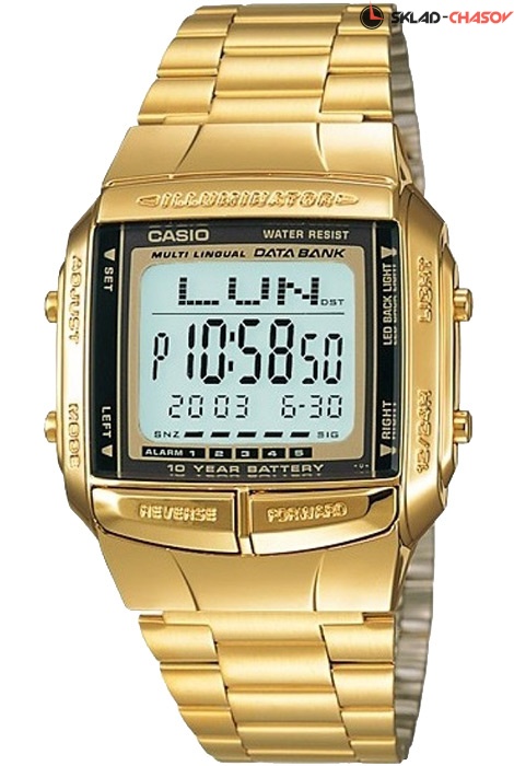 Кварцевые мужские наручные часы Casio DB-360G-9A с цифровой индикацией времени. Калибр механизма — 2515. Функциональность данной модели: русифицированный индикатор дня недели, формат времени 12/24, функция летнего времени (DST), функция двойного времени, вечный календарь до 2039 года, 5 независимых будильников, сигнал начала часа, секундомер с точностью 1/100 секунды и измерением до 23 часов 59 минут 59,99 cек., таймер обратного отсчета (диапазон времени 24 часа), записная книжка телефонных номеров на 30 записей, диодная подсветка циферблата. Стальной браслет. На браслет нанесено стойкое PVD покрытие. Водонепроницаемость WR (3 атм). Батарейка на 10 лет работы.