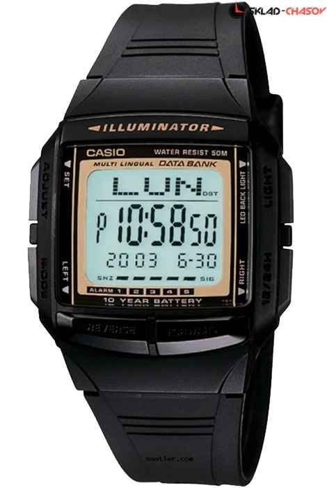 Кварцевые мужские наручные часы Casio DB-36-9A с цифровой индикацией времени. Калибр механизма — 2515. Функциональность данной модели: русифицированный индикатор дня недели, формат времени 12/24, функция летнего времени (DST), функция двойного времени, вечный календарь до 2039 года, 5 независимых будильников, сигнал начала часа, секундомер с точностью 1/100 секунды и измерением до 23 часов 59 минут 59,99 cек., таймер обратного отсчета (диапазон времени 24 часа), записная книжка телефонных номеров на 30 записей, диодная подсветка циферблата. Водонепроницаемость WR (3 атм). Батарейка на 10 лет работы.