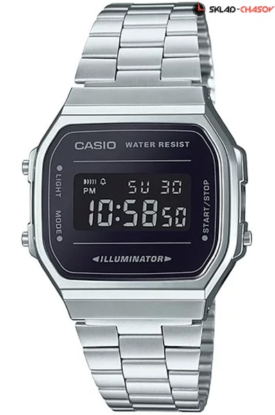 Электронные кварцевые мужские наручные часы Casio Vintage A-168WEM-1E с цифровой индикацией времени. Калибр механизма — 3298. Функциональность данной модели: формат времени 12/24, автоматический календарь с установкой 28 дней на февраль, будильник, сигнал начала часа, секундомер с точностью 1/100 секунды и измерением до 59 минут 59,99 cек., электролюминесцентная подсветка циферблата.